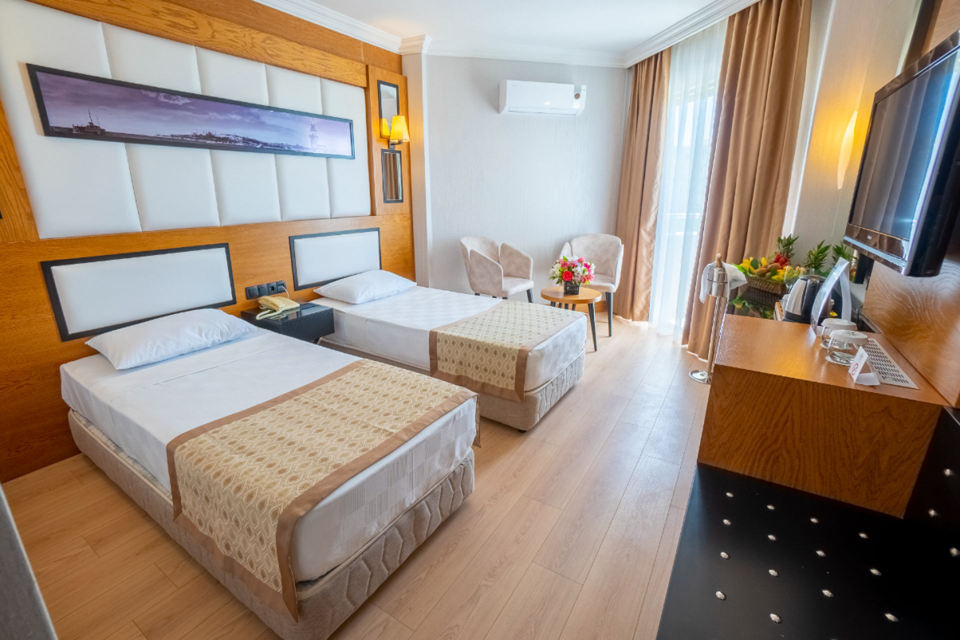 Всички стаи са оборудвани с климатик, телевизор, телефон, баня с душ, сешоар, сет за чай/кафе, минибар (безплатен), сейф (безплатен), балкон.