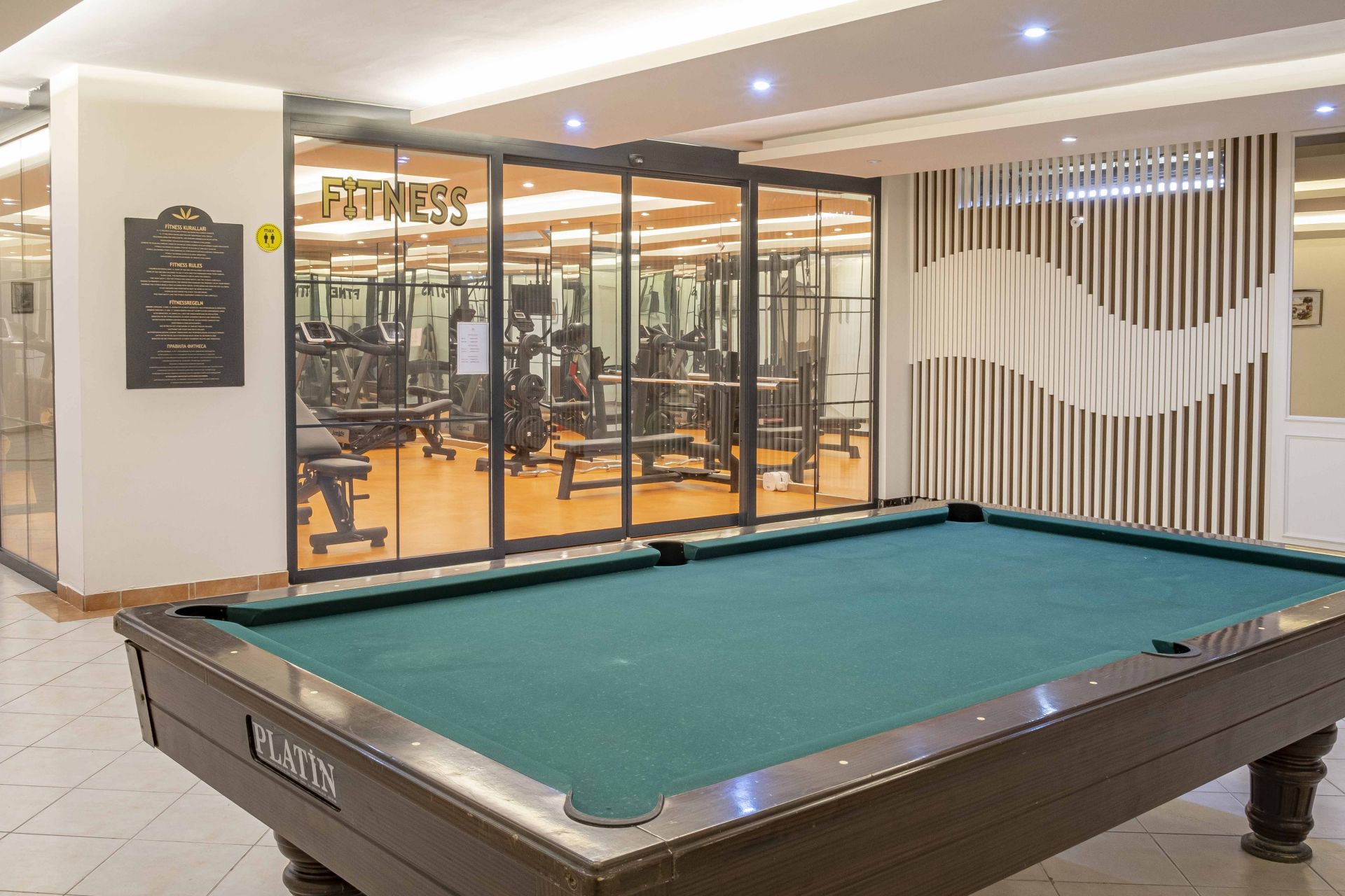 Основен ресторант, 3 а-ла-карт ресторанта (рибен, барбекю, италиански – 1 безплатно посещение на 1 от ресторантите при минимум 7 нощувки, с предварителна резервация), 2 снек ресторанта, сладкарница, 5 бара, 3 открити и 1 закрит басейн, 4 водни пързалки, СПА център, магазини, 2 конферентни зали.
