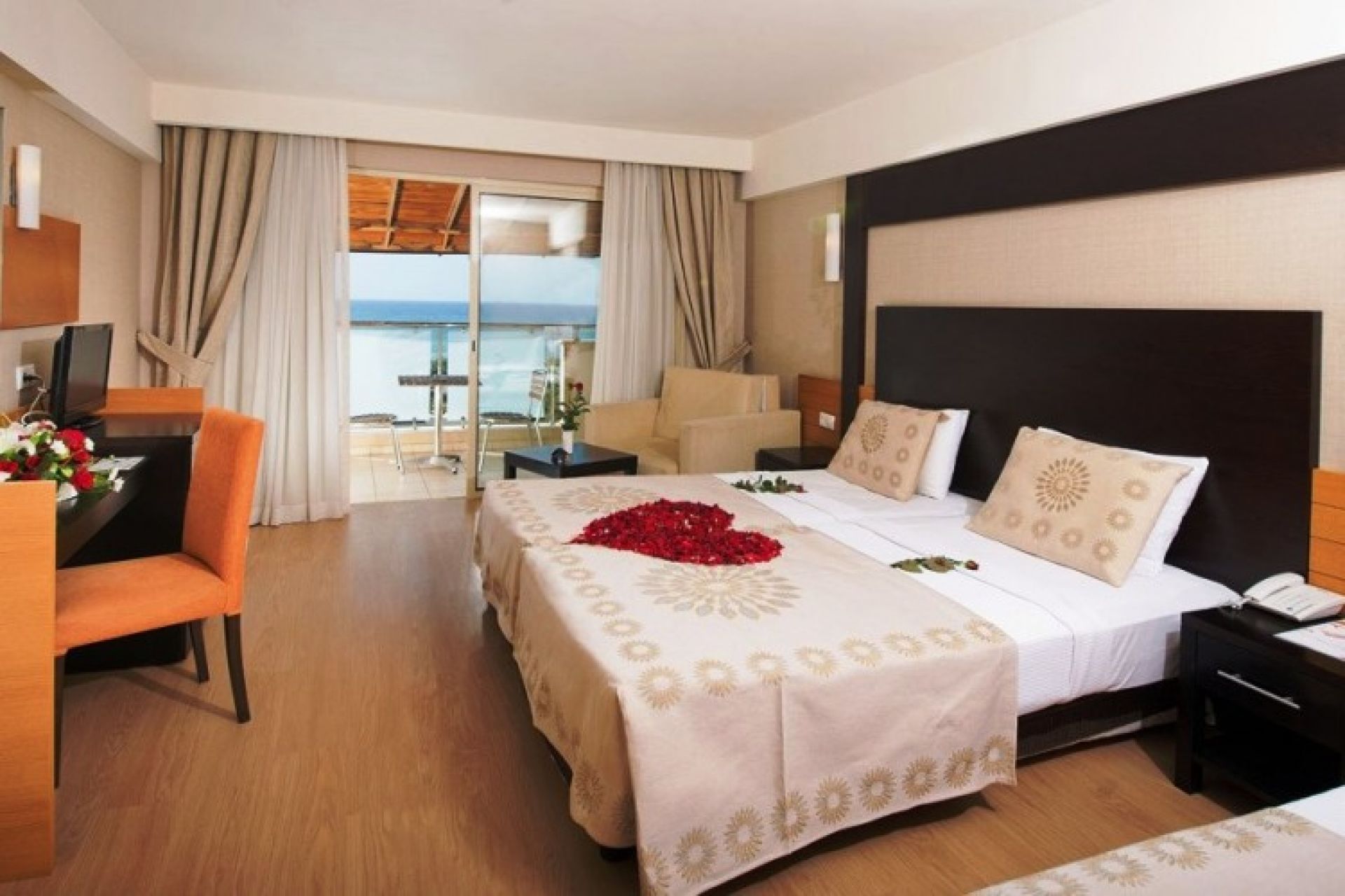 Хотелът се състои от основен 7 етажен корпус. Общо 485 стаи от които 209 са стандартни стаи с изглед градина с големина 26кв.м, 254 стандартни стаи с изглед море с големина 26 кв.м , 22 фамилни стаи с размер 36 кв.м. Всички стаи са оборудвани с: централен климатик, вана, сешоар, телевизор, телефон, сейф – платен, мини - бар, балкон. Почистване на стаите- ежедневно, смяна на спално бельо- на всеки 3 дни.