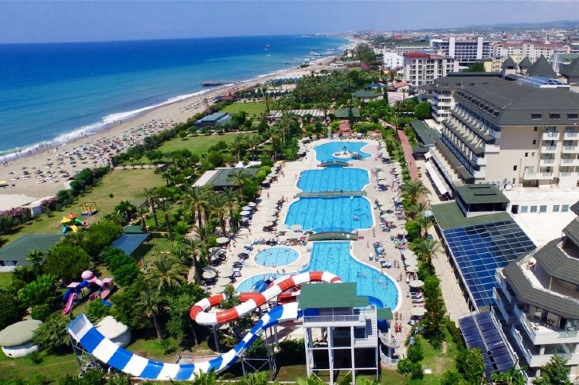 Основен ресторант, 2 а - ла - карт ресторанта (1 път безплатно за престой от 1 седмица), 6 бара, 2 открити басейна, 2 водни пързалки, тв зала, пералня, доктор, спа салон, закрит басейн, паркинг. За децата: детски пързалки, детска площадка, мини клуб Безплатни услуги: сауна, турска баня, анимации, тенис на маса, аеробика, плажен волейбол, баскетбол, 2 тенис корта, дискотека ( напитки платени ). Платени услуги: Wi-Fi интернет, масаж, пилинг, спа процедури, боулинг, билярд, тенис ракети и топки под наем, игрални автомати, интернет кафе, уроци по дайвинг, водни спортове.