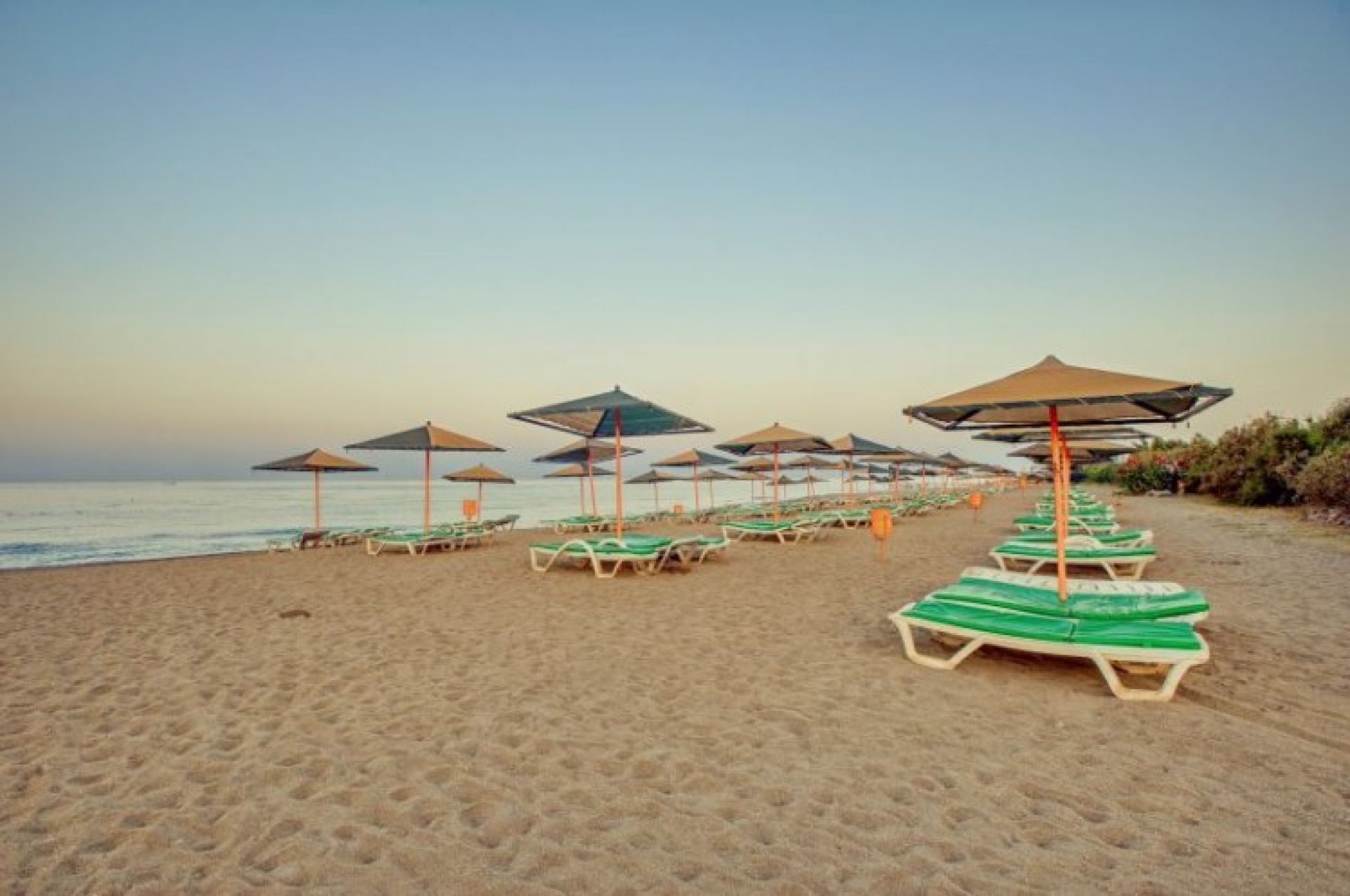 Собствен пясъчно-чакълест плаж. Чадъри, шезлонги на плажа и басейна - безплатно.