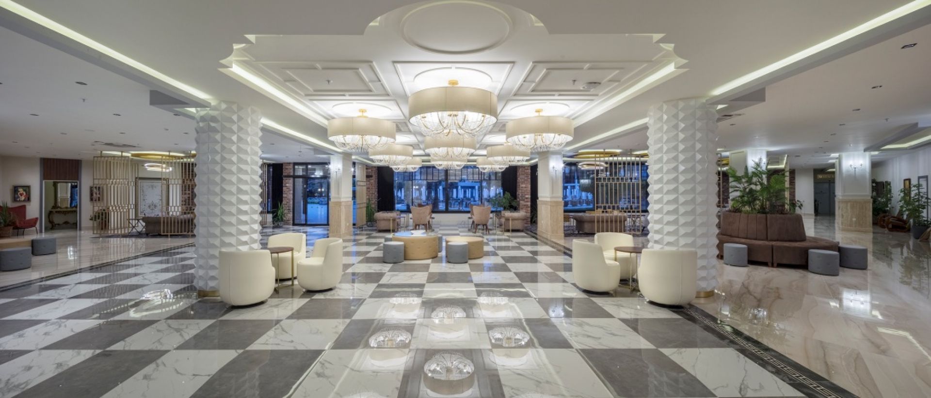 1 основен ресторант, бистро ( от 21ч до 7ч.), 4 а-ла-карт ресторант (италиански, kebab house, рибен и китайски - 1 безплатно посещение на един от ресторантите - с предварителна резервация), 5 бара и дискотека, сладкарница, 2 открити и 1 закрит басейн, 2 басейна с водни пързалки за възрастни, конферентна зала, СПА център.
