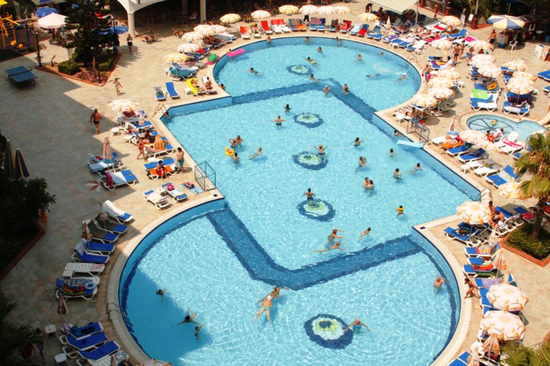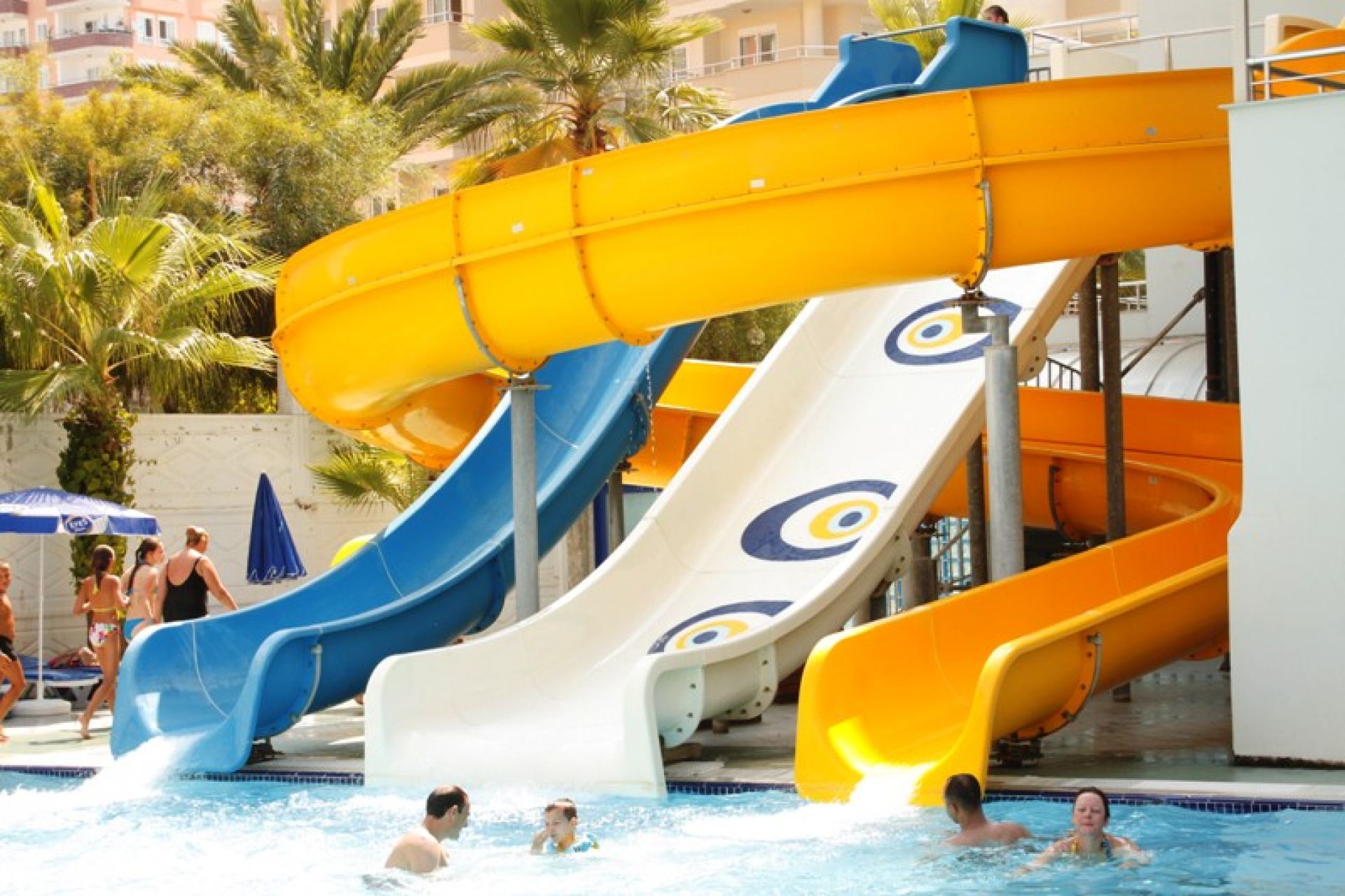 Основен ресторант, 5 бара, 2 открити басейна, закрит басейн, водни пързалки, детски басейн, магазини, SPA център, фитнес център, дискотека, амфитеатър, конферентни зали, паркинг. За децата: детски басейн, водни пързалки, мини клуб (4-12 г.), анимация.