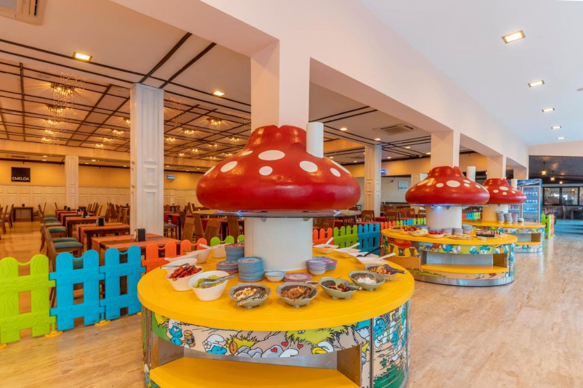 Основен ресторант, 5 а-ла-карт ресторанта (рибен, турски, италиански, далекоизточен, стек - срещу заплащане, с предварителна резервация), снек бар, сладкарница, 5 бара, диско бар, 3 открити басейна, водни пързалки, амфитеатър, лунапарк, СПА център, дискотека, магазини.