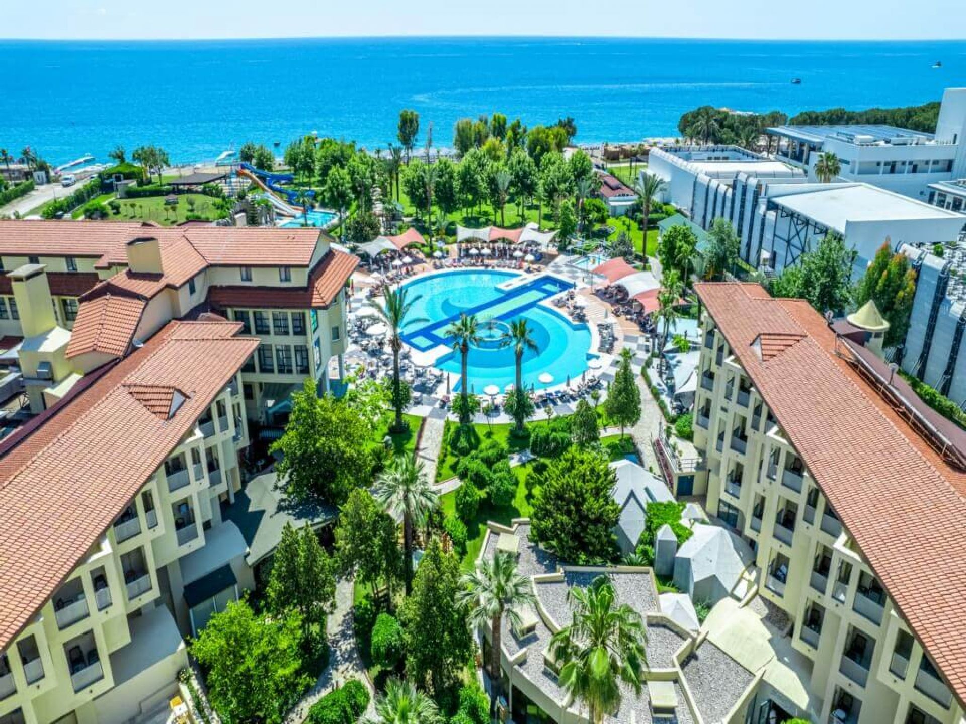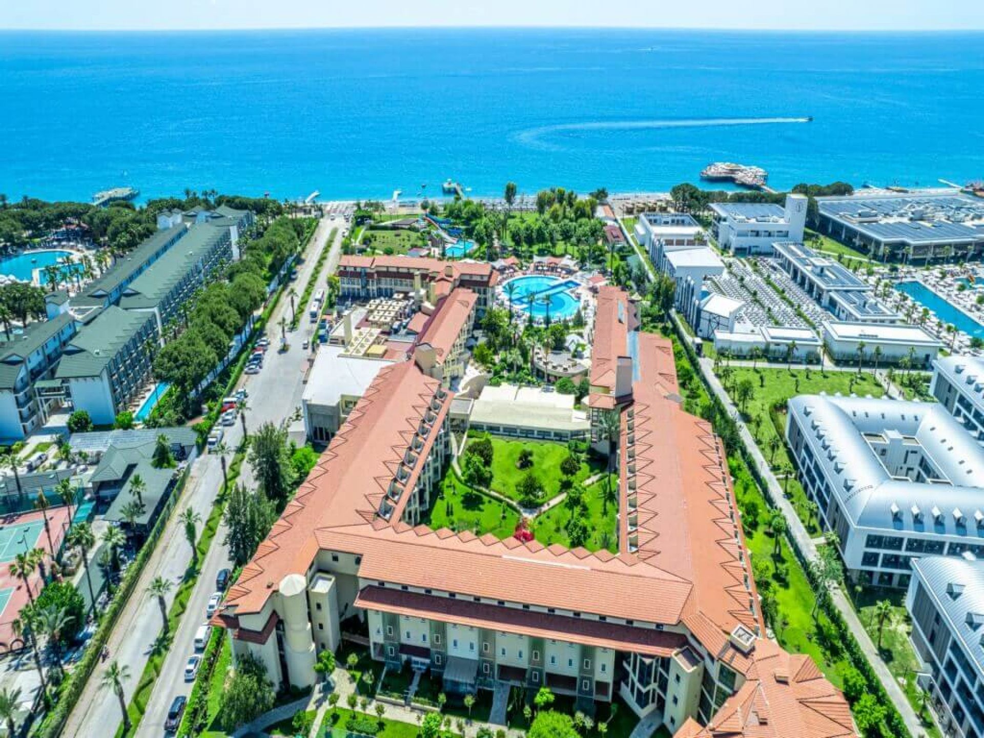 Основен ресторант, 3 а-ла карт ресторанта (средиземноморски, италиански, турски – 1 безплатно посещение). 4 бара, открит и закрит басейн, водни пързалки, сладкарница, мини клуб, мини диско, СПА център, конферентна зала. Wi-Fi (безплатен).
