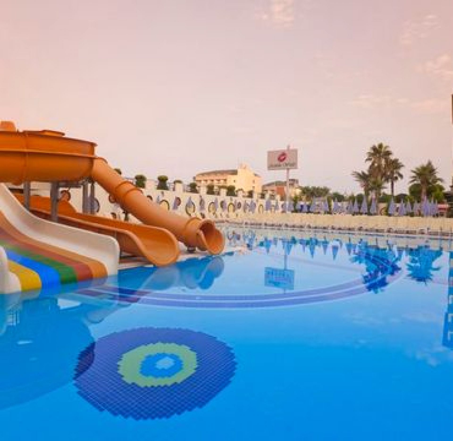 Основен ресторант, 1 а-ла-карт ресторант (1 безплатно посещение при минимум 7 нощувки), снек ресторант, 4 бара, 1 открит басейн, водни пързалки, амфитеатър, конферетнта зала, паркинг.