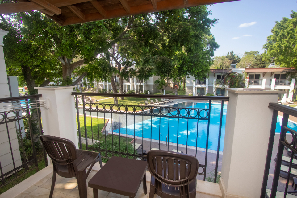 Deluxe Room - 30 м2, двойно или две единични легла, диван, баня с душ, балкон, гледка към басейна.