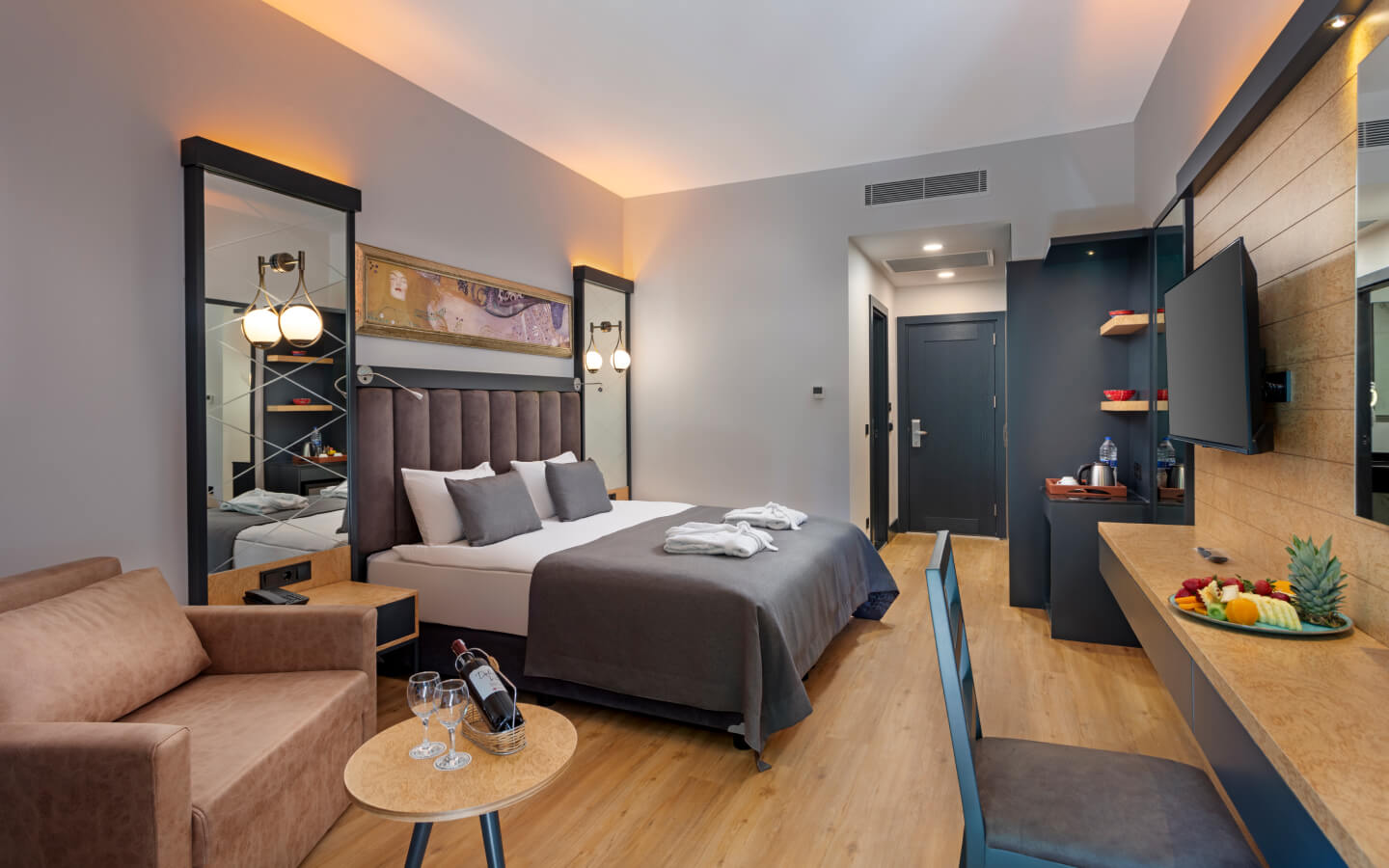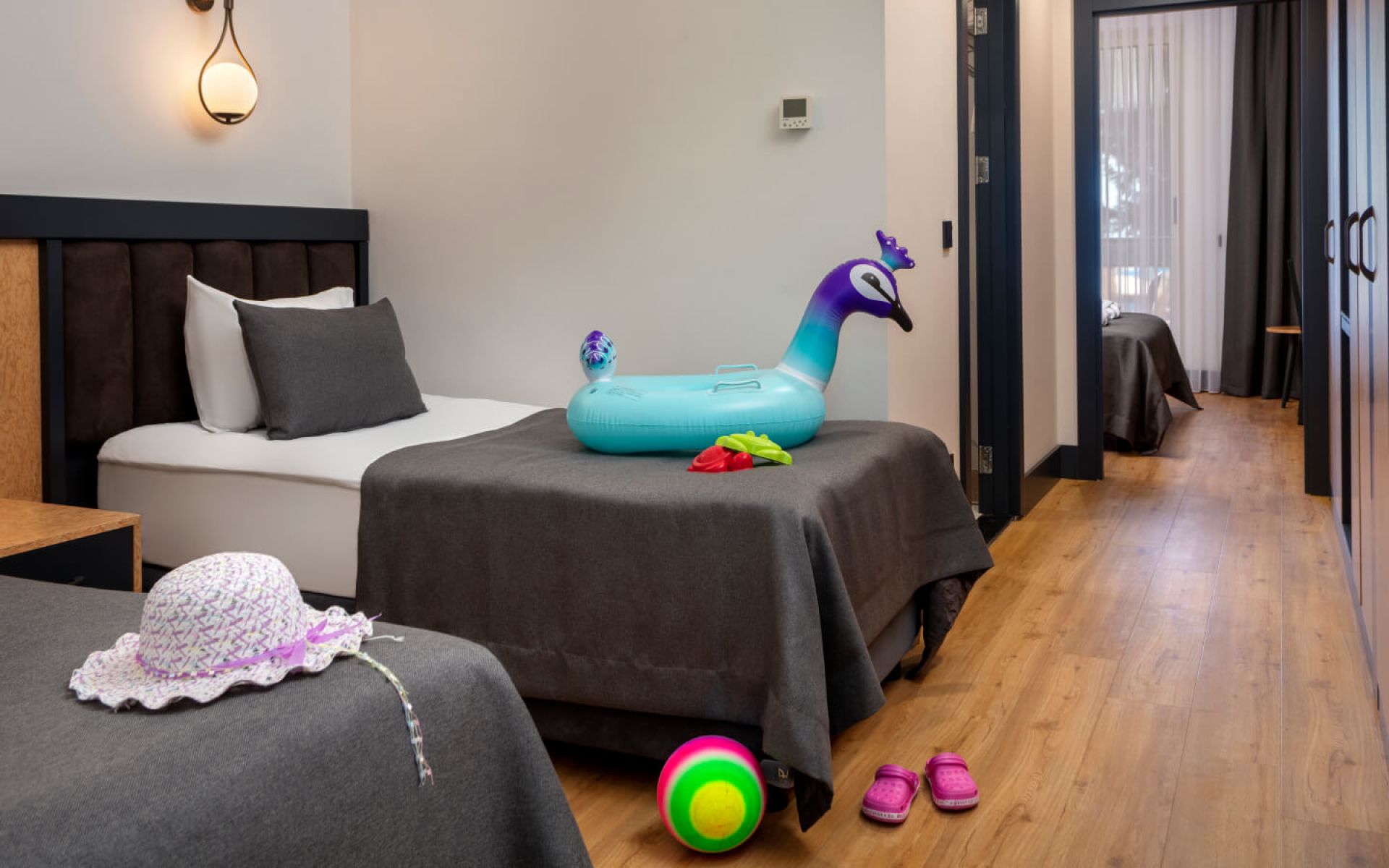 Хотелът разполага с общо 328 стаи, от които 262 стандартни стаи, 64 фамилни стаи и 2 кралски апартамента. Всички стаи са оборудвани с: централен климатик, сателитна телевизия, телефон, безжичен интернет, баня с вана, сешоар, мини бар – зарежда се ежедневно с вода, безалкохолни и бира, сейф, балкон. Почистване на стаите и смяна на кърпите – всеки ден, смяна на бельото – 3 пъти в седмицата.