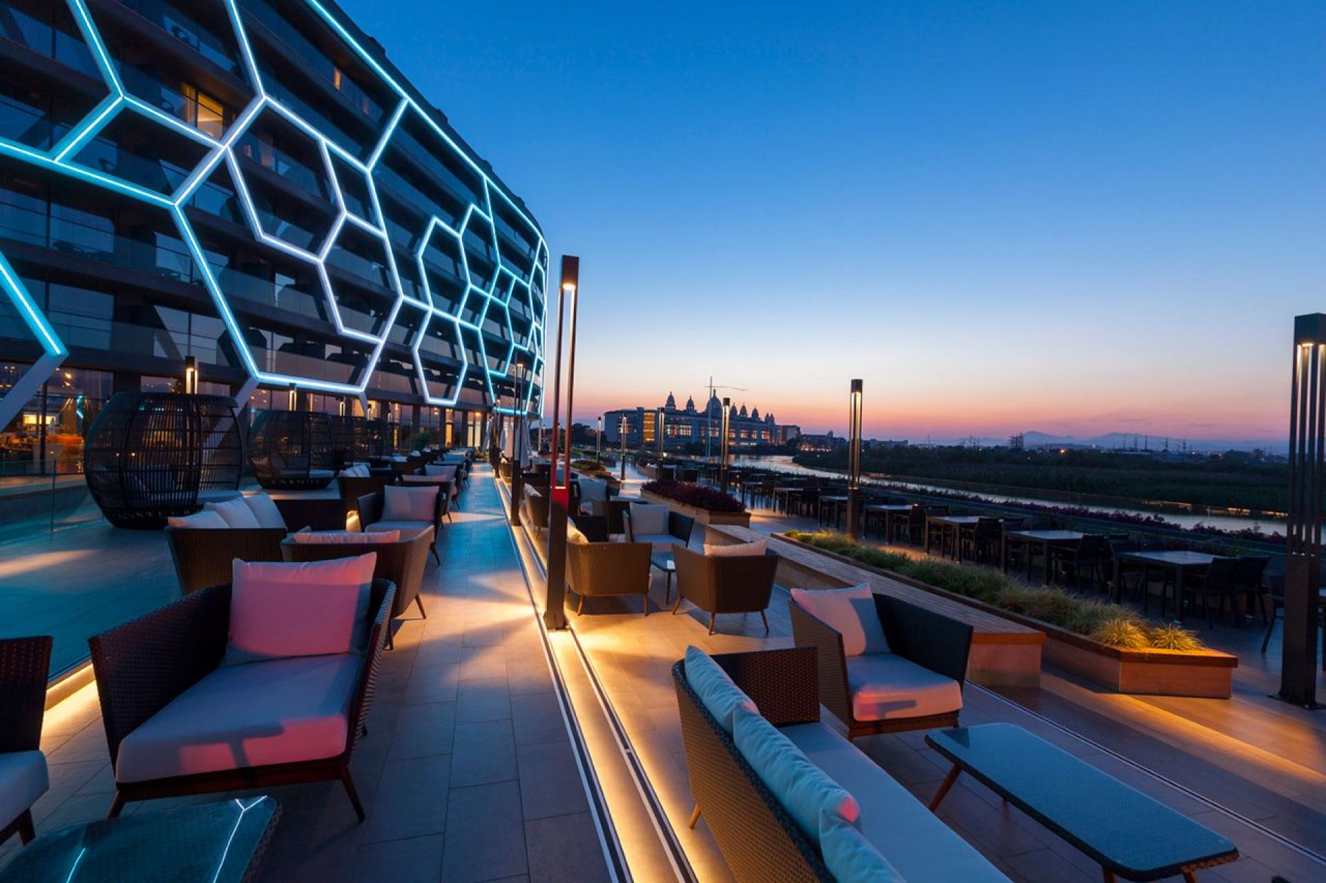 Основен ресторант, 3 а-ла-карт ресторанта (рибен, азиатски, барбекю - с предварителна резервация, съгласно концепцията на хотела ), 4 бара, дискотека, 2 открити и 1 закрит басейн, 3 водни пързалки, СПА център, 6 конферентни зали.