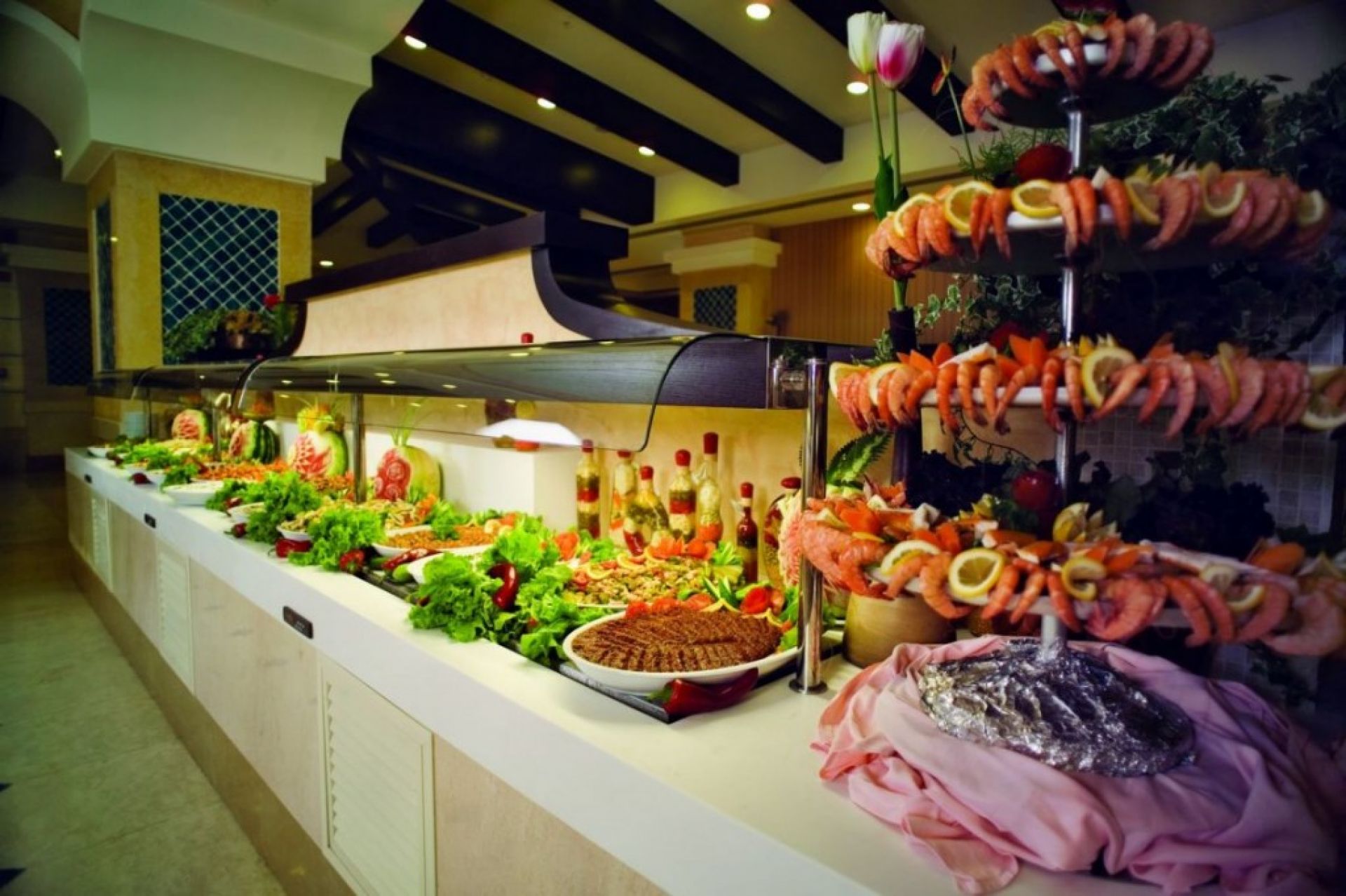 Основен ресторант, 4 а-ла-карт ресторанта /италиански, османски, мексикански, средиземноморски/, 7 бара, 2 басейна, водни пързалки, вътрешен басейн, СПА център, масажи, сауна, турска баня, плажен волейбол, баскетбол, тенис на маса, тенис на корт, мини клуб/4-12г./, анимация/жива музика, дискотека, дневни и нощни забавления/, 4 конферентни зали. Платени услуги: някои вносни напитки, наргиле, билярд, светлини и екипировка за тенис корта, масажи, телефон, детегледач, дискотека, витамин бар.