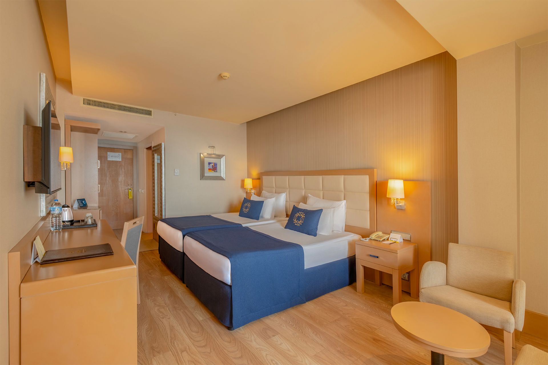 Състои се от 6-етажна основна сграда, отделен корпус Beach House и четири отделни 4-етажни корпуса Terrace House, разположени в близост до релакс-басейна (Terrace сградите са без асансьор). Всички стаи са оборудвани с вана,сешоар, индивидуален климатик, телевизор, телефон, мини-бар (безалкохолни напитки и бира се зареждат ежедневно), безплатно, сейф (безплатно), подова настилка – теракот, балкон, ежедневно почистване на стаята, смяна на спалното бельо – 2 пъти седмично