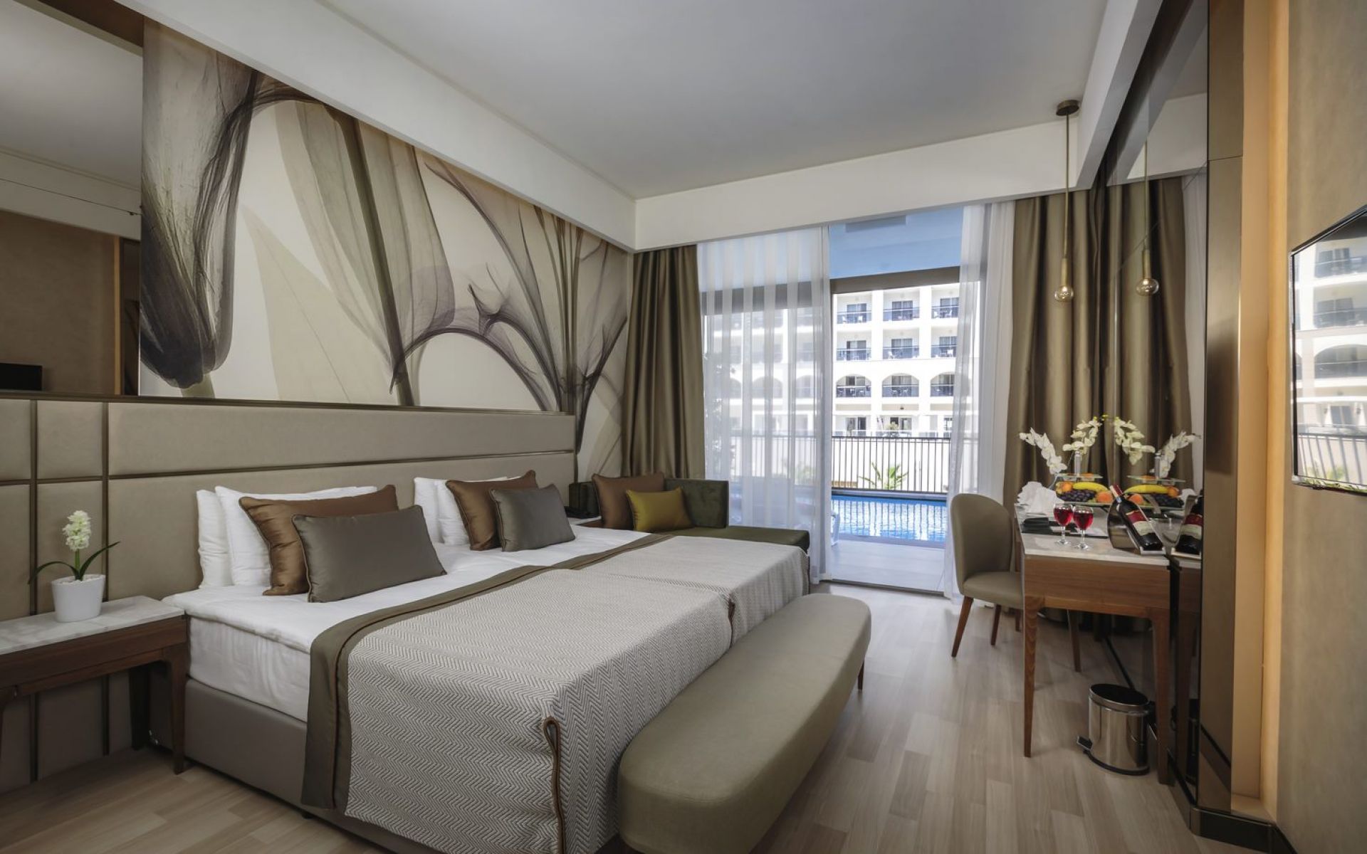 Хотелът разполага с общо 362 стаи, разположени в 8-етажна основна сграда, от които 177 Standart Room (35 м2), 80 Standart Pool Side Room (с изглед басейн - 35 м2), 52 Standart Sea Side Room (със страничен изглед море - 35 м2), 10 Swim Up (с директен достъп до общ басейн - 35 м2), 36 Family Room (2 спални, 2 бани - 55 м2), 3 Disabled Room (пригодени за хора с ограничена подвижност - 35 м2), 2 Penthouse Suite (1 спалня, 1 баня с джакузи, голяма тераса - 115 м2), 2 King Suite (2 спални, всекидневна, 2 бани, разположени на 2 етажа - 140 м2).