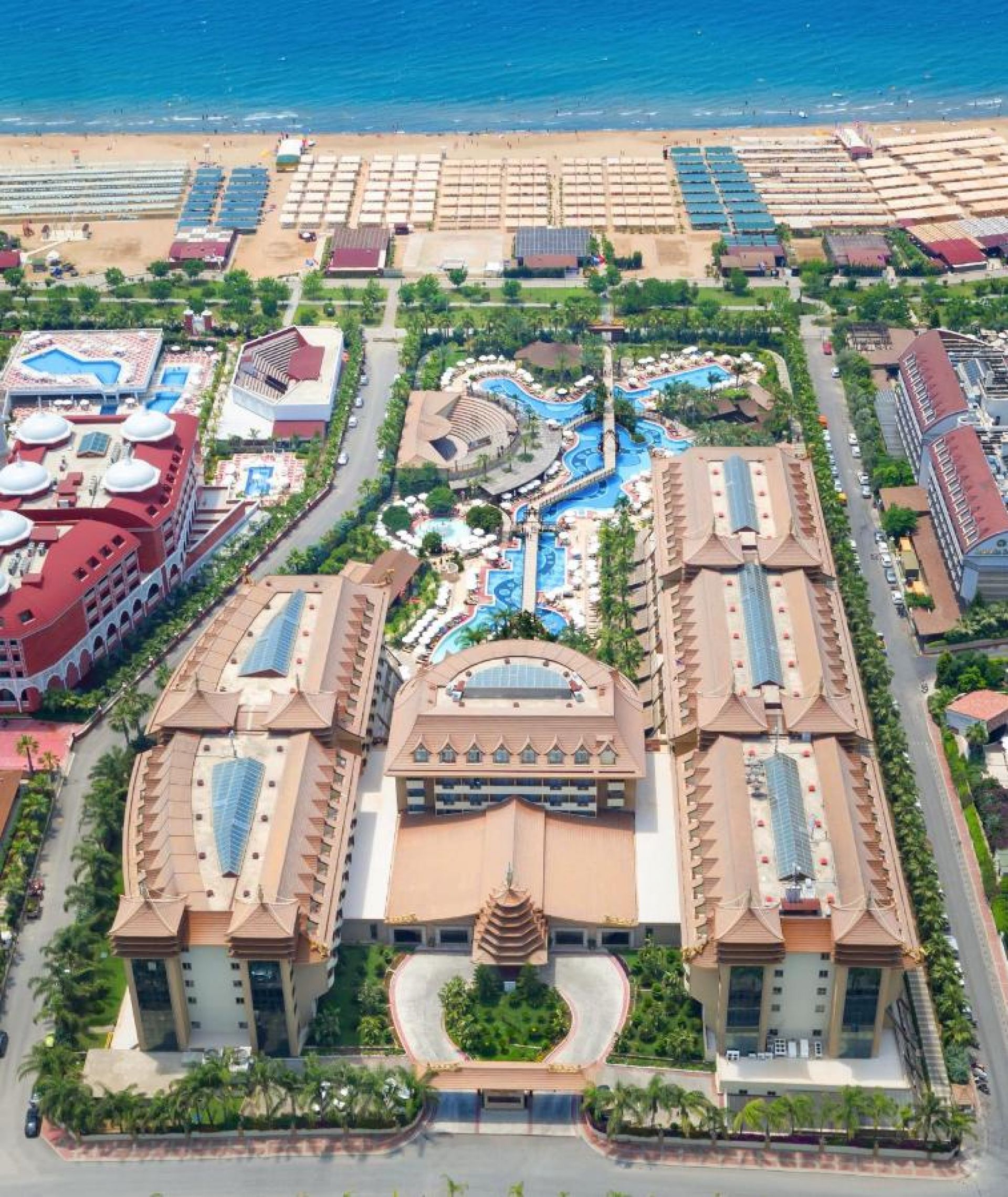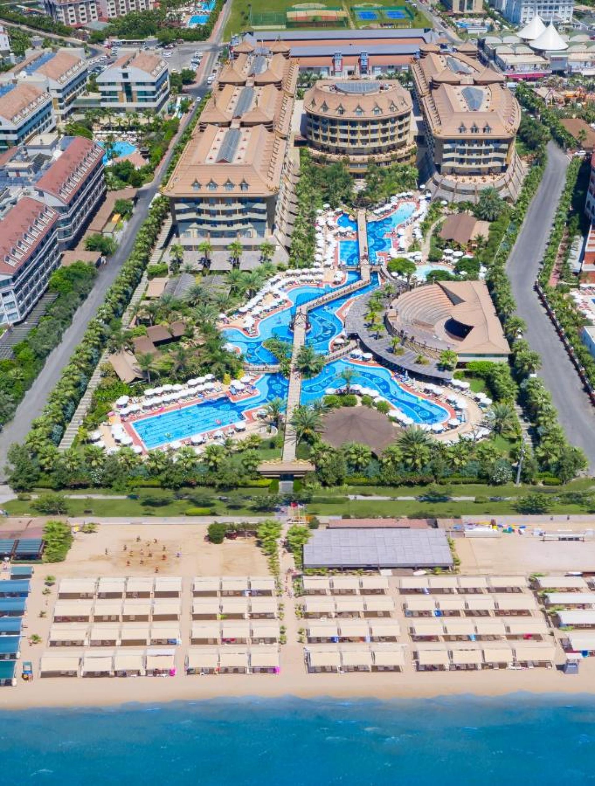 Основен ресторант, 4 а-ла-карт ресторанта (италиански, азиатски, турски, рибен - срещу заплащане, с предварителна резервация, съгласно концепцията на хотела), бистро, сладкарница, снек ресторант, 9 бара, открит и закрит басейн, аквапарк, СПА център, дискотека, магазини, 4 конферентни зали, паркинг.