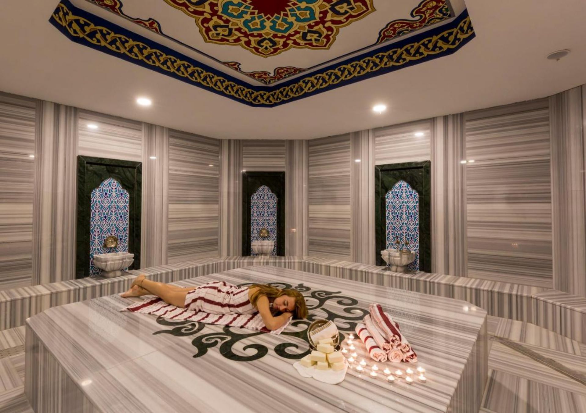 Основен ресторант, 2 а-ла-карт ресторанта (рибен, турски, международна кухня - с предварителна резервация), 4 бара, открит закрит басейн, 3 водни пързалки, СПА център, конферентна зала.