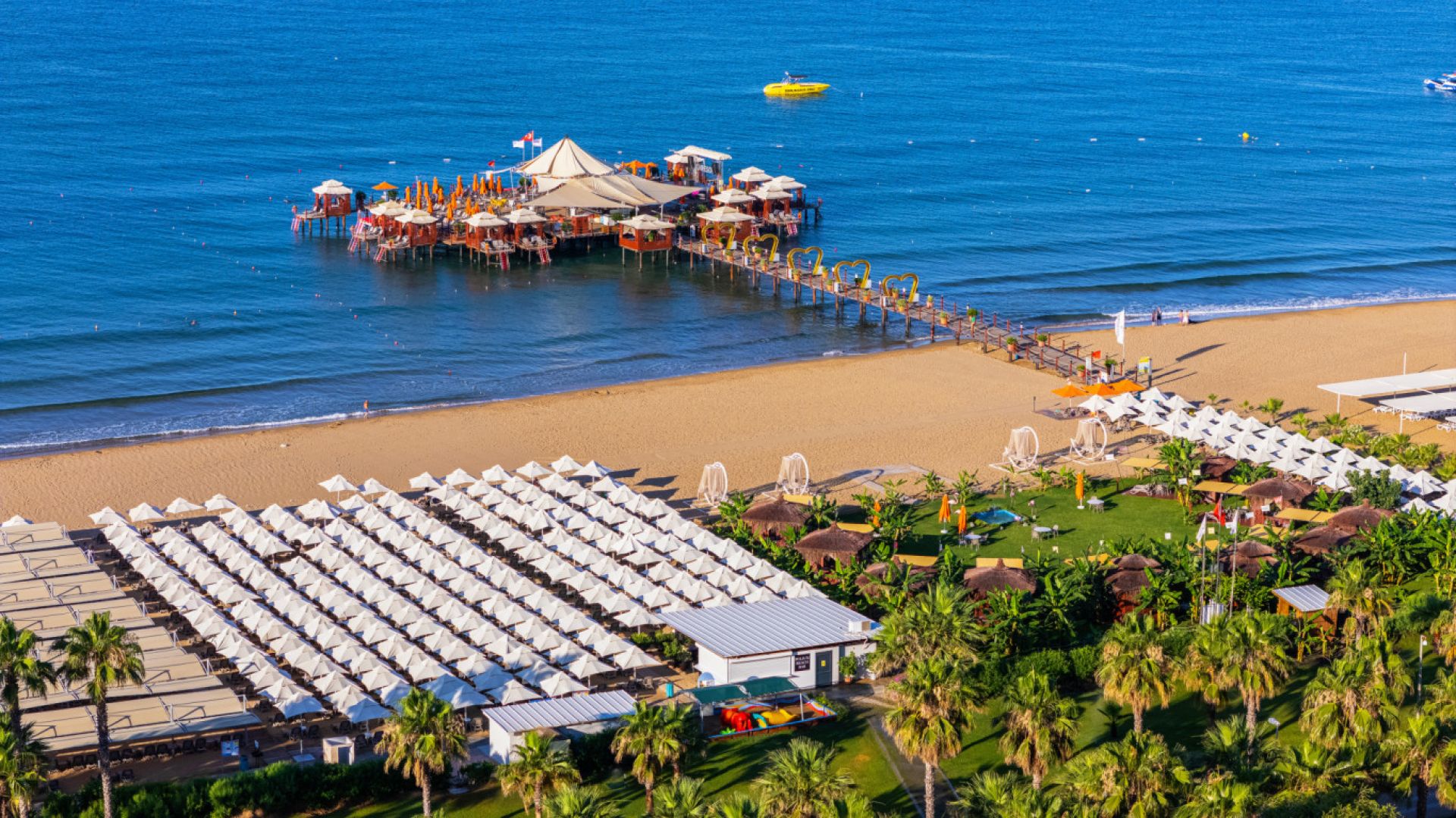 Основен ресторант, 7 а-ла-карт ресторанта (срещу заплащане), 6 бара, сладкарница, дискотека, открити и закрит басейн, аквапарк с 13 водни пързалки, Спа център, анимация, обмяна на валута, рент-а-кар. Безплатни услуги: фитнес, сауна, турска баня, плажен волейбол, баскетбол, гимнастика, аеробика, тенис на маса, дартс. Платени услуги: днакузи, център за красота, масажи, билярд, боулинг, интернет кафе, наем на велосипеди, безмоторни водни спортове, видео игри, химическо чистене. За децата: детски басейн, мини клуб, 4 водни пързалки.