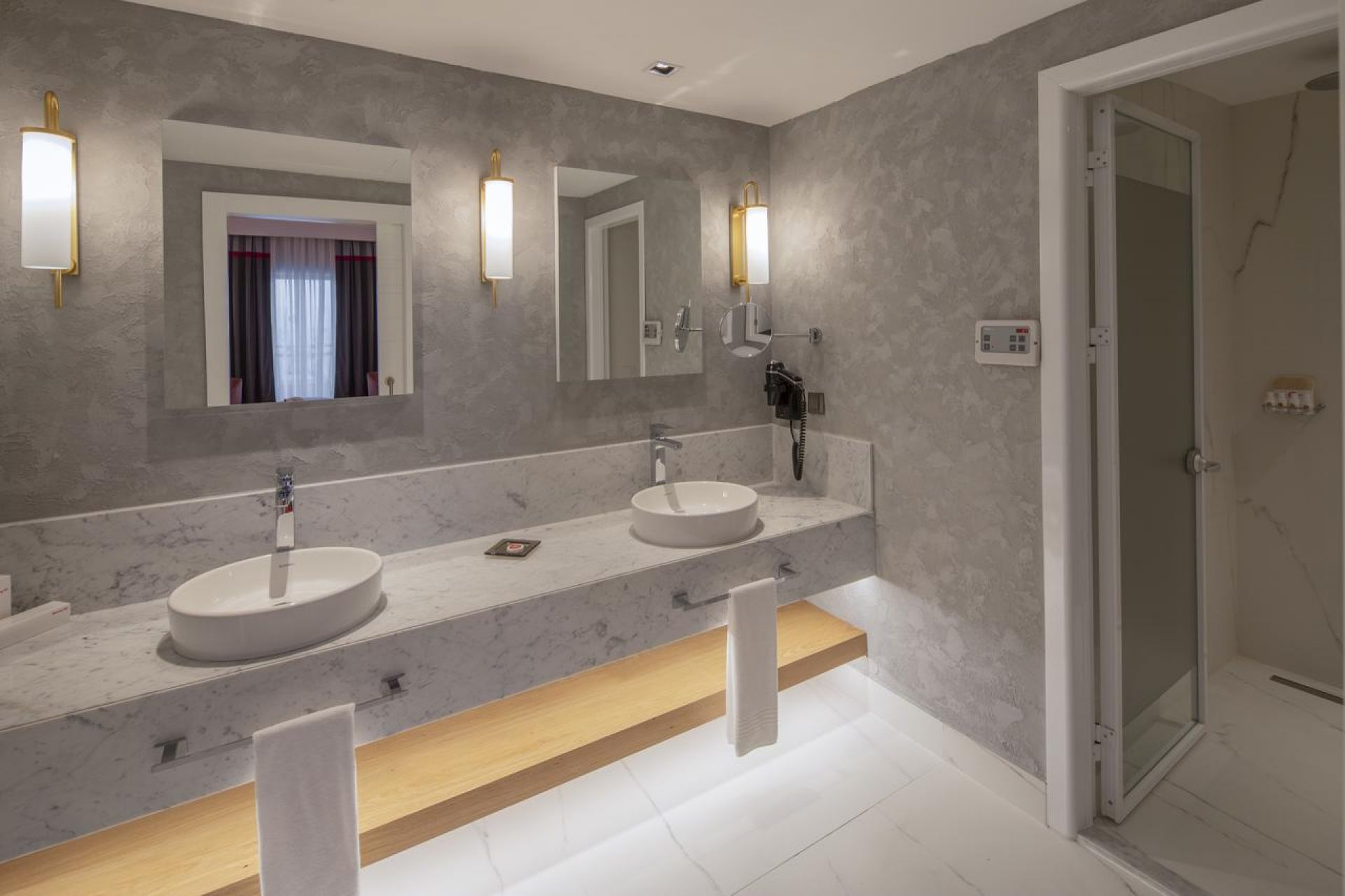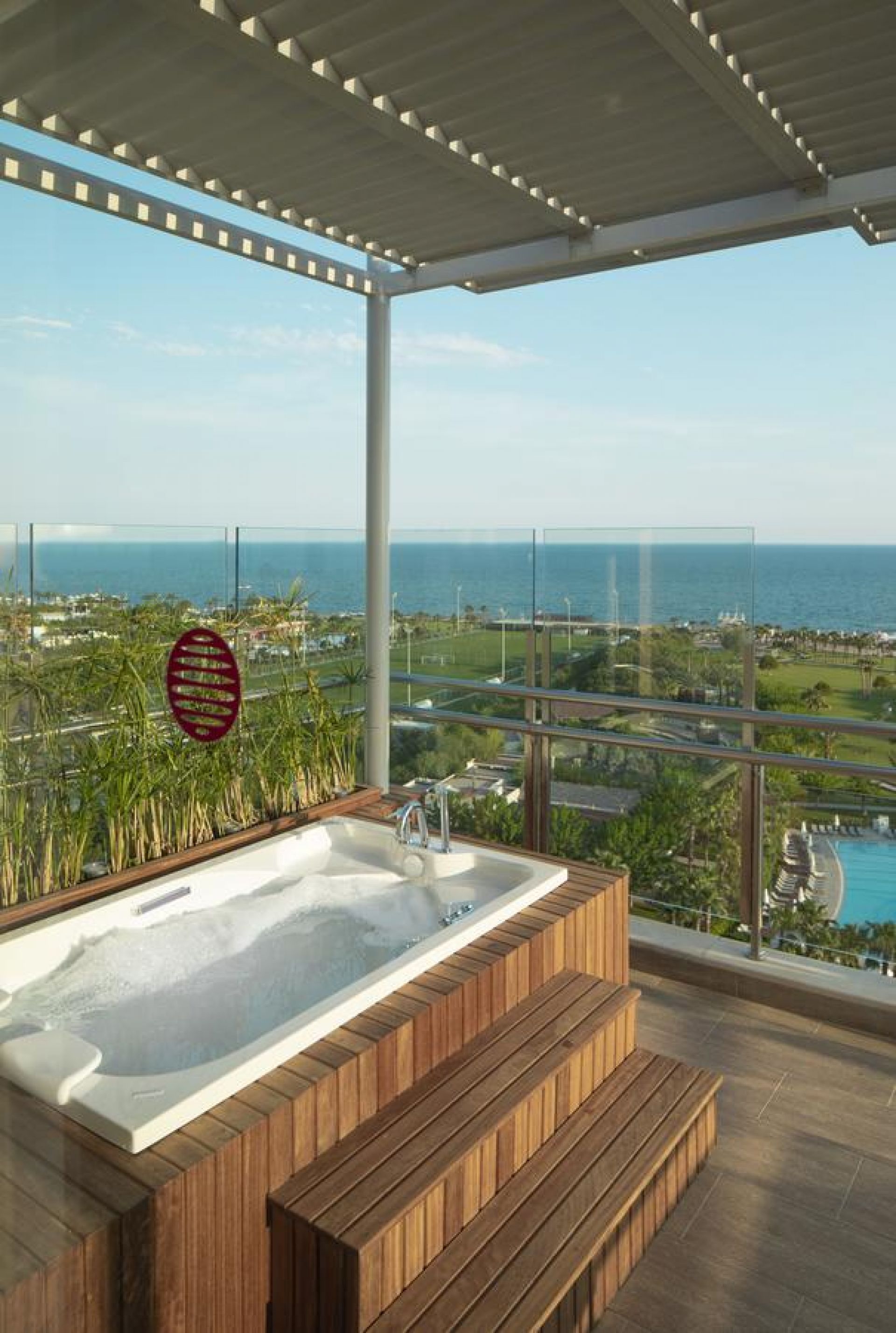 Стаи Main building: 74 Deluxe Room with Partial Sea View (частичен изглед море - 38м2), 84 Deluxe Room with Partial Sea and Pool View (частичен изглед море и басейн - 38м2), 36 Deluxe Room with Sea View (изглед море - 48 м2), 16 Corner Suite with Jacuzzi & Sea View (спалня, баня, тераса с джакузи - 48 м2), 4 Designer Suite (спалня и хол разделени с врата, баня, кафе Nespresso, тераса с джакузи - 68 м2), 3 Grand Designer Suite (изглед море, спалня и хол разделени с плъзгаща врата, 2 бани, кафе Nespresso, тераса с джакузи - 106 м2), 3 Designer Suite 360 (спалня с кръгло легло, баня, кафе Nespresso, тераса с джакузи - 55 м2).