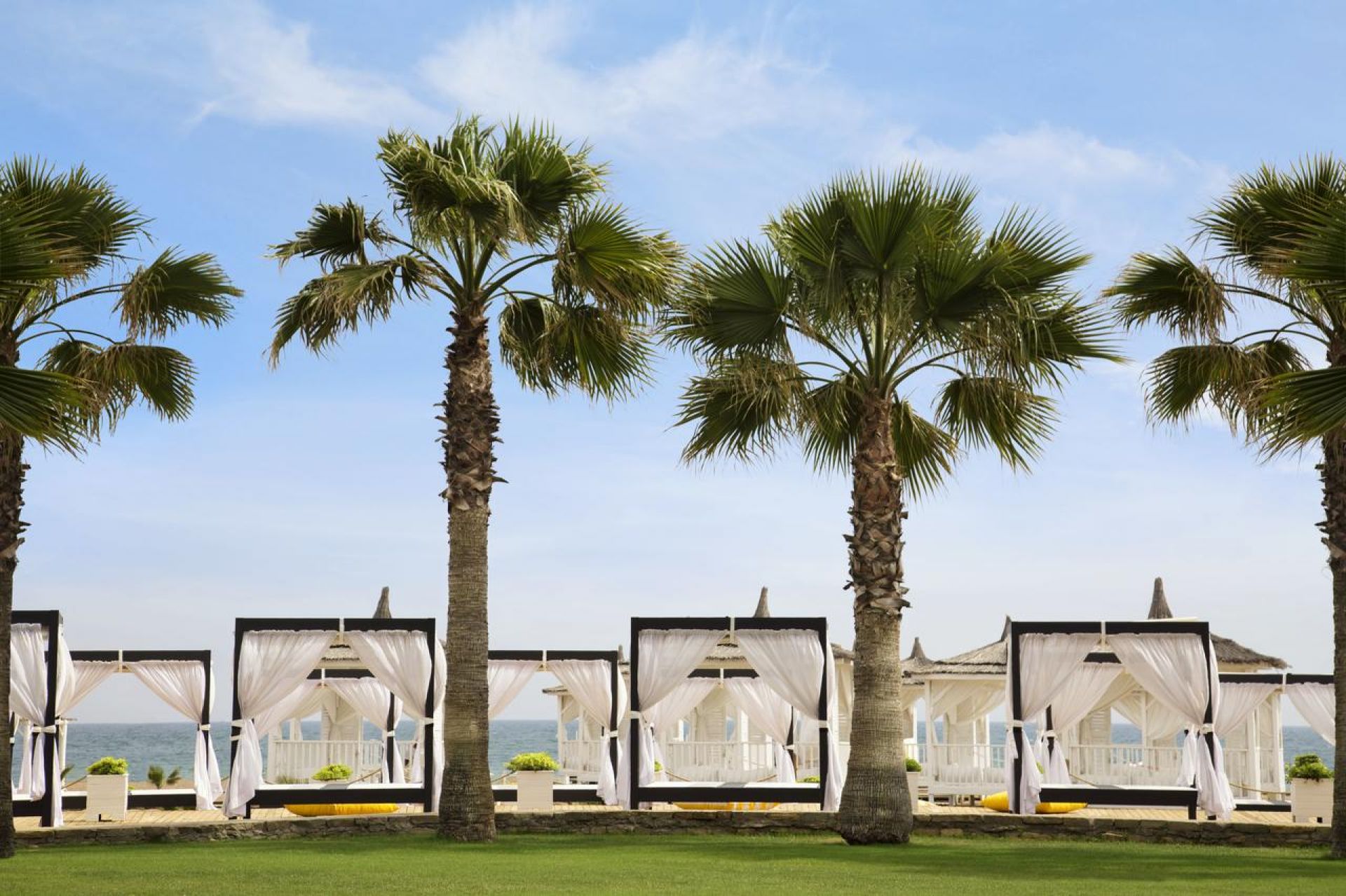 Собствен, пясъчен. Чадъри и шезлонги на плажа и при басейна - безплатно. Плажни кърпи - безплатно. Кабани - срещу заплащане.