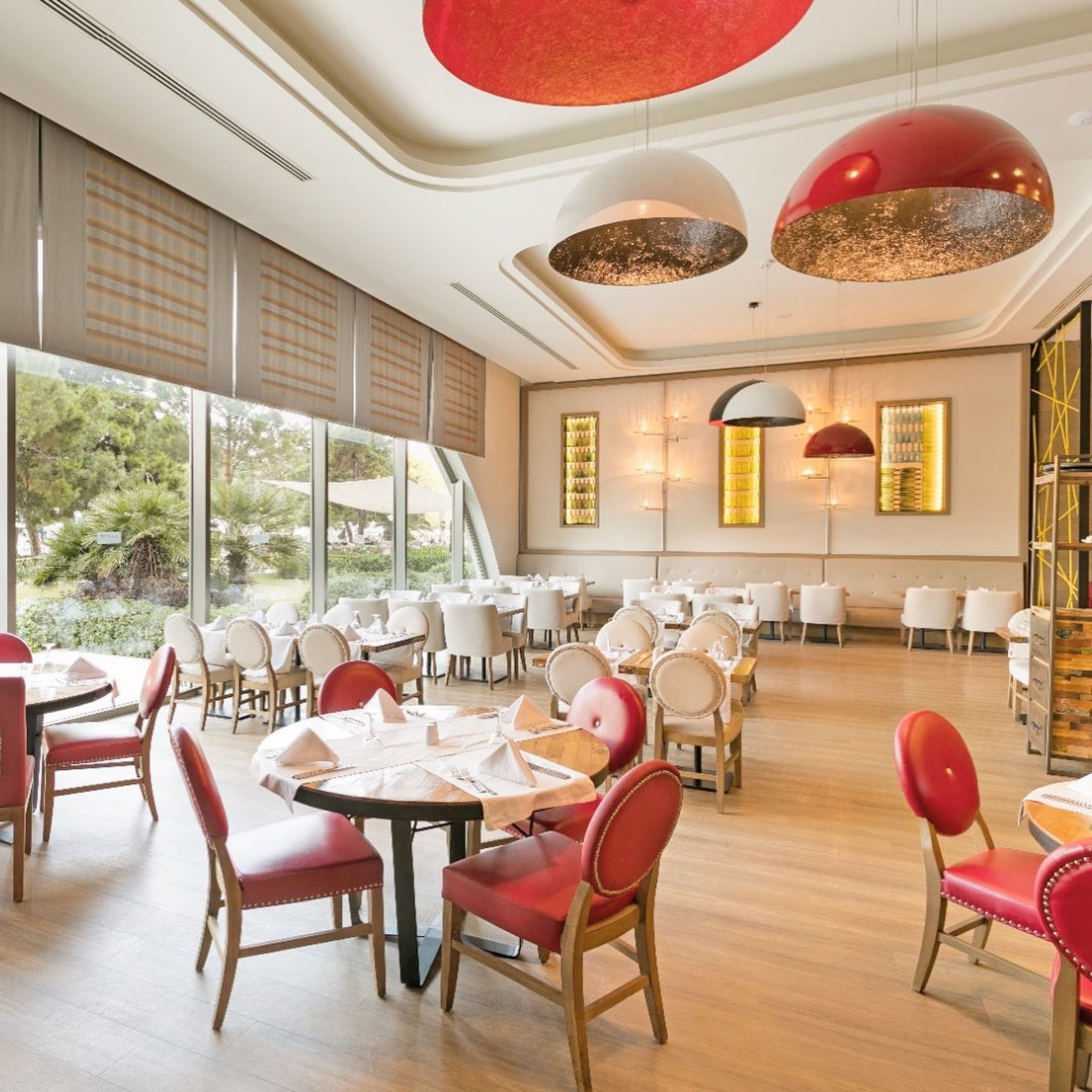 Основен ресторант, 3 а - ла - карт ресторанти (италиански, турски и рибен), 3 открити басейна, закрит басейн, закрит детски басейн, водни пързалки, барбекю, сладкарница, лоби бар , диско бар, витамин бар, боулинг бар, амфитеатър, кино, музика на живо, дискотека (безплатно).