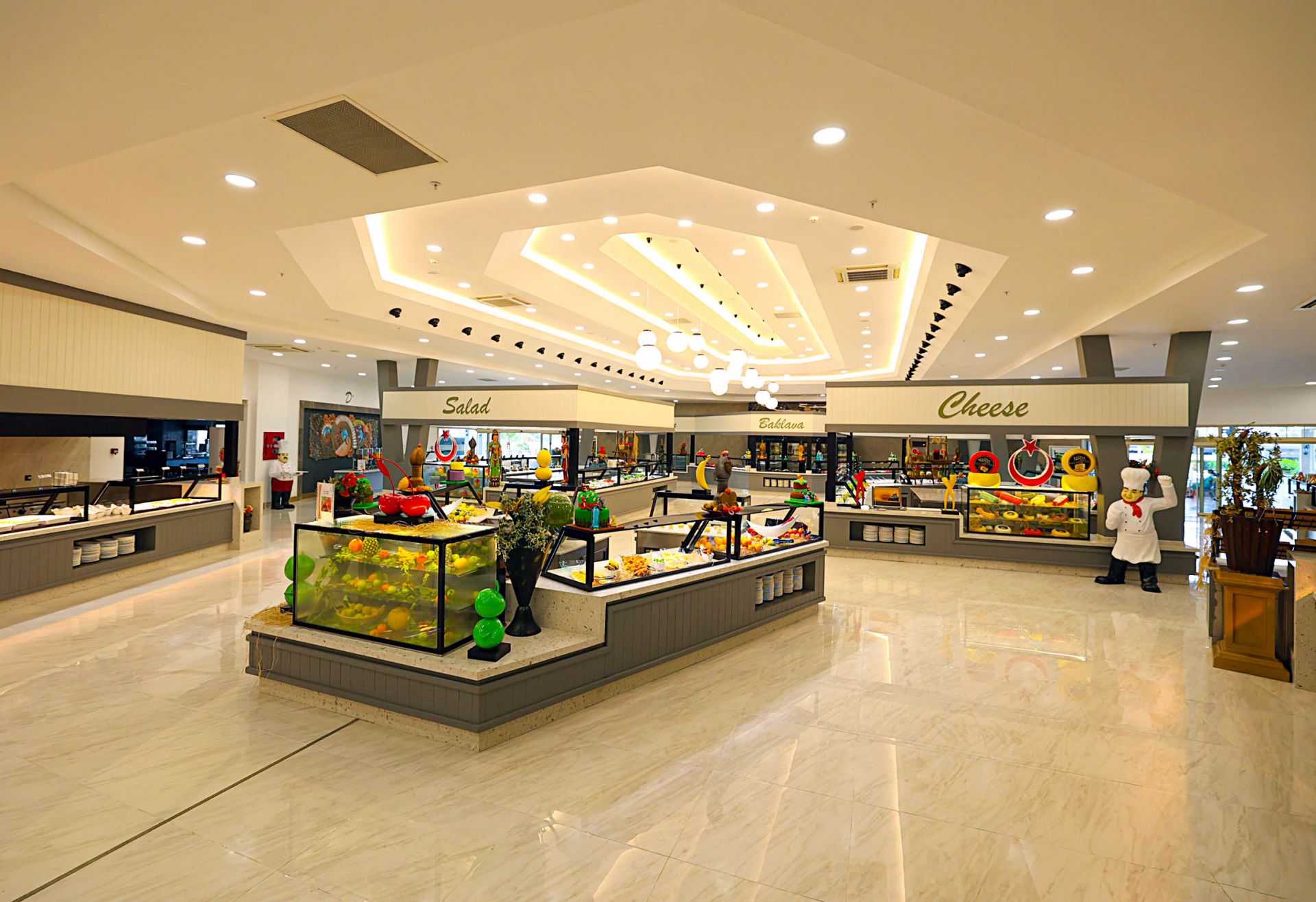 Основен ресторант, 4 a la carte ресторанта (турски и италиански - с предварително записване, за целия престой се полага 1 посещение на едни от тях - безплатно; рибен и мексикански - платени), 8 бара (едни от тях работи 24 часа), сладкарница, дискотека, 2 открити и 1 закрит басейн, 3 водни пързалки, Спа център, магазини, фризьорски салон, лекарски кабинет, пералня.