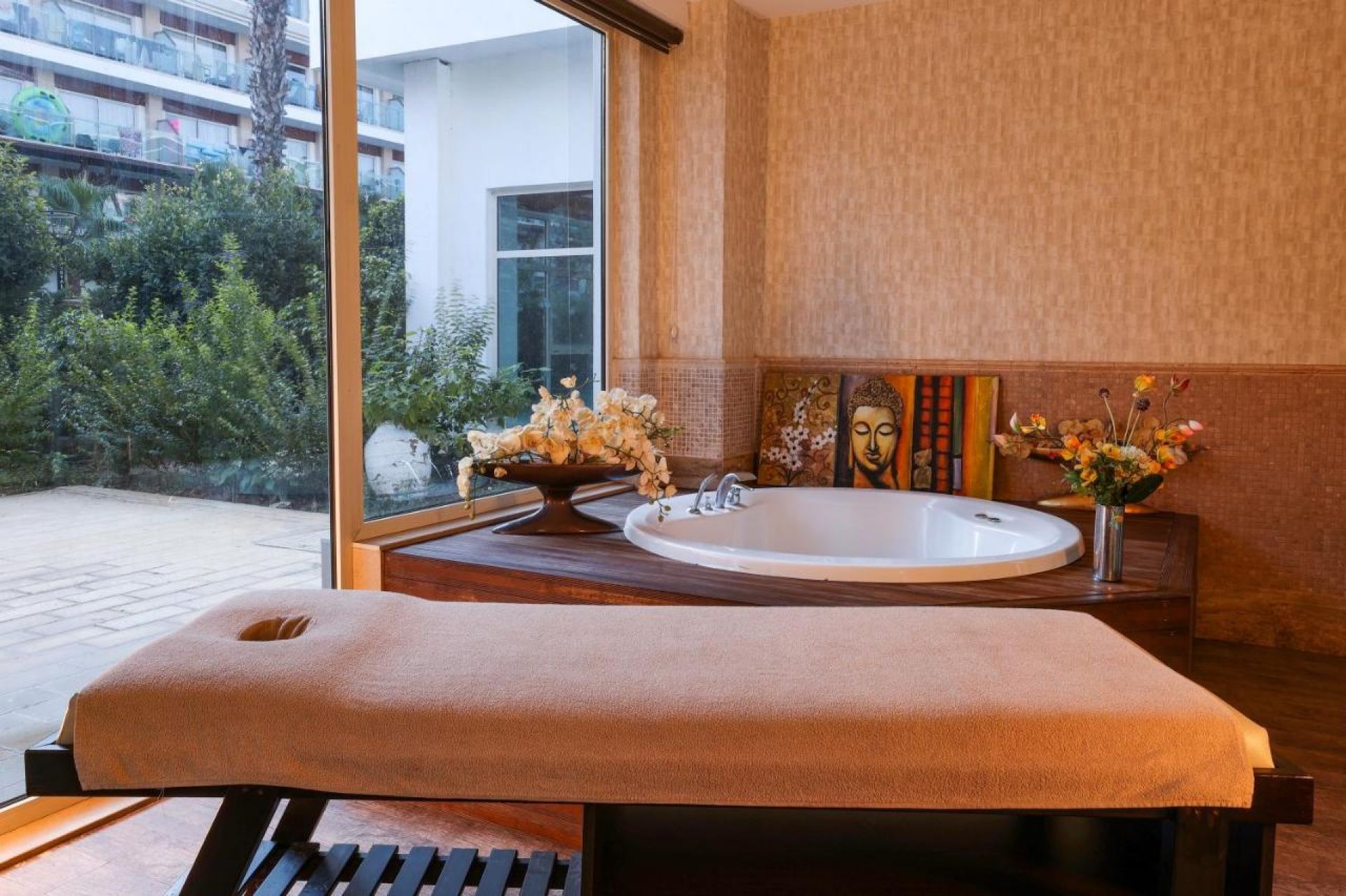 Основен ресторант, 5 a - лa - карт ресторанта ( по едно безплатно посещение по време на престоя ), 7 бара, магазини, Интернет - кафе, безжичен интернет на територията на хотела ( безплатно ), 2 открити басейна, закрит басейн, аква парк, 5 водни пързалки. За децата: мини клуб(4-12г.), 2 детски басейна. Безплатни услуги: турска баня, сауна, парна баня, джакузи, тенис корт, баскетбол, плажен волейбол, фитнес, тенис на маса, водна топка, водна аеробика, дартс, мини голф, кино. Платени услуги: масаж, пилинг, билярд, боулинг, видео игри, джага, осветление на тенис корта, тенис ракети и топки под наем, кану, водно колело, сърф (с лиценз), голф, водни ски, банан, фризьорски салон, СПА-център