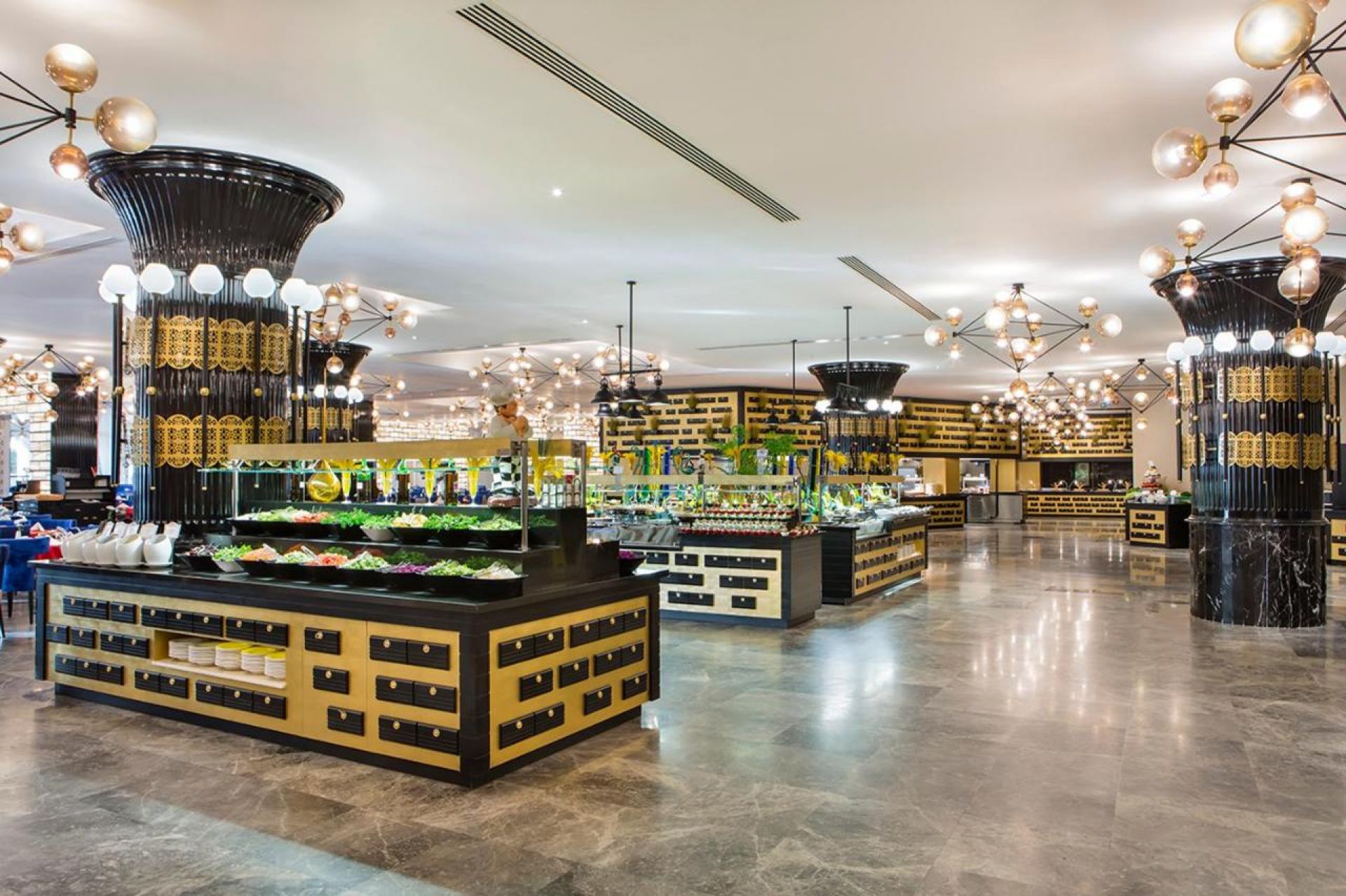 Основен ресторант, 3 а - ла - карт ресторанта (с предварителна резервация), 10 бара, 9 открити басейна,1 закрит басейн, водни пързалки, магазини, SPA център, дискотека, кино, 11 конферентни зали, паркинг.