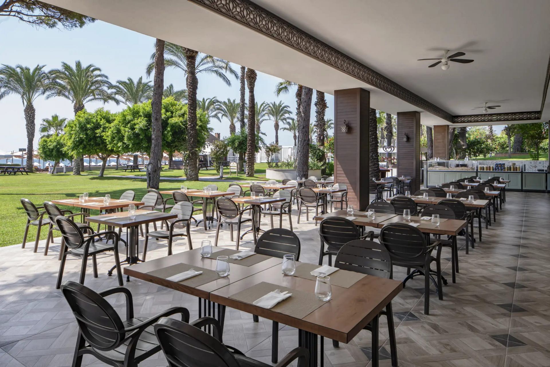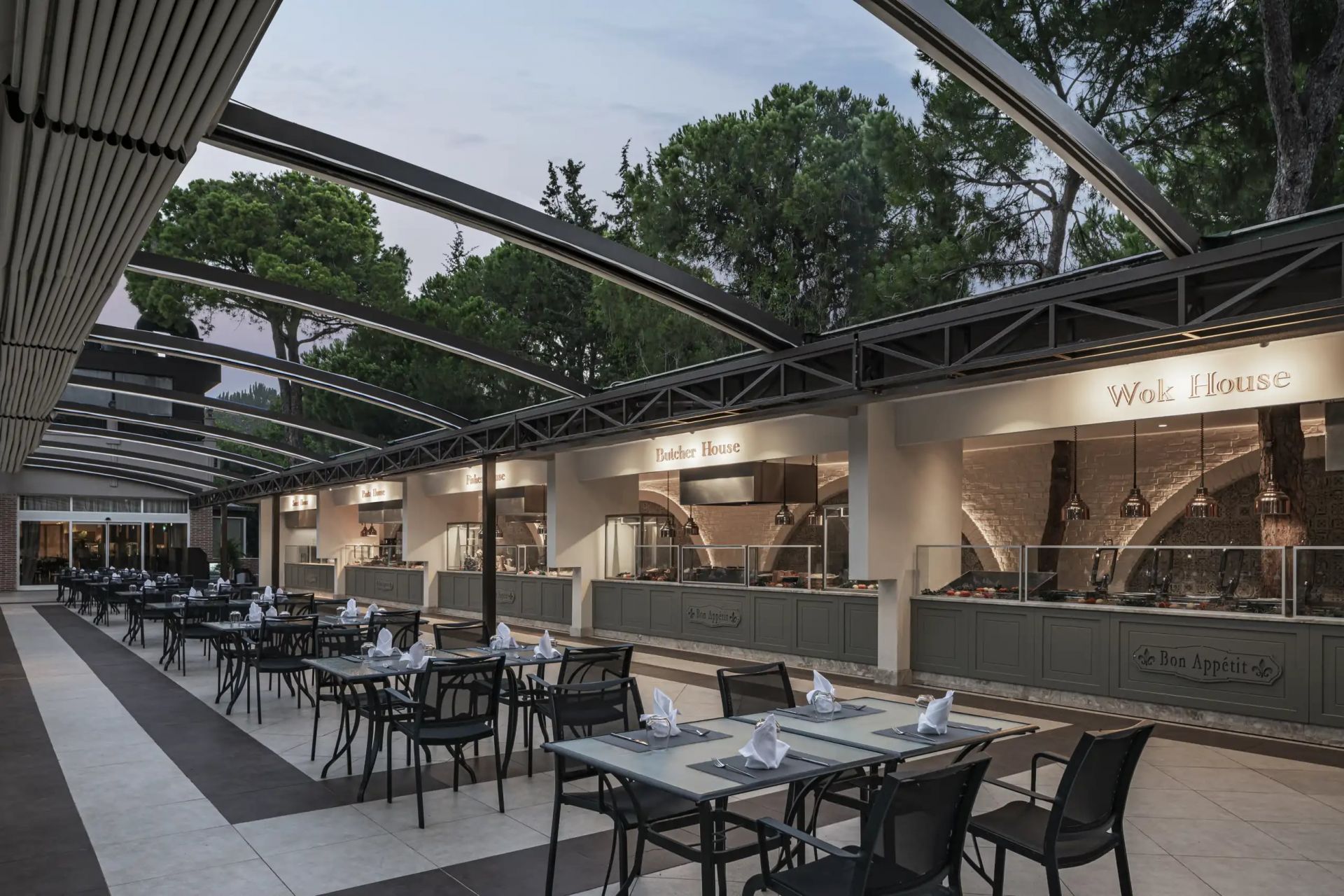 Основен ресторант, 6 а-ла-карт ресторанта (турски, далекоизточен, тепаняки, рибен, италиански, мексикански - срещу заплащане с предварителна резервация), снек бар, сладкарница, станция за сандвичи, 11 бара, витамин бар, 6 открити и 2 закрити басейна, аквапарк, СПА център, дискотека, магазини, 2 конферентни зали.
