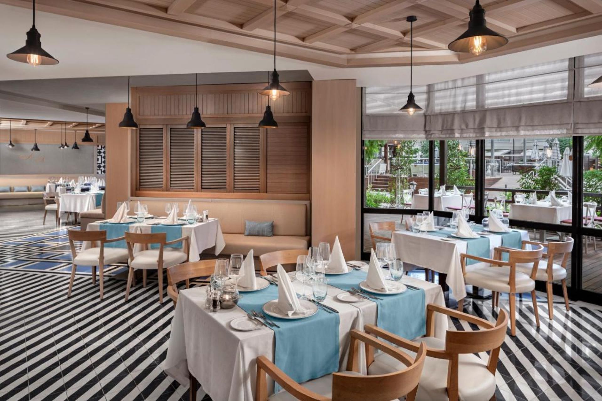 Основен ресторант, вегетарианско меню, 4 a-лa-карт ресторанта (средиземноморски, китайски, интернационален, турски – с предварително записване, за времето на престоя, едно посещение във всеки ресторант – безплатно), 7 бара (един от тях е отворен 24 часа), 2 открити басейна (2300 и 1400 кв.м.), 2 закрити басейна, водни пързалки, анимация, амфитеатър, кино, жива музика, дискотека (безплатно)