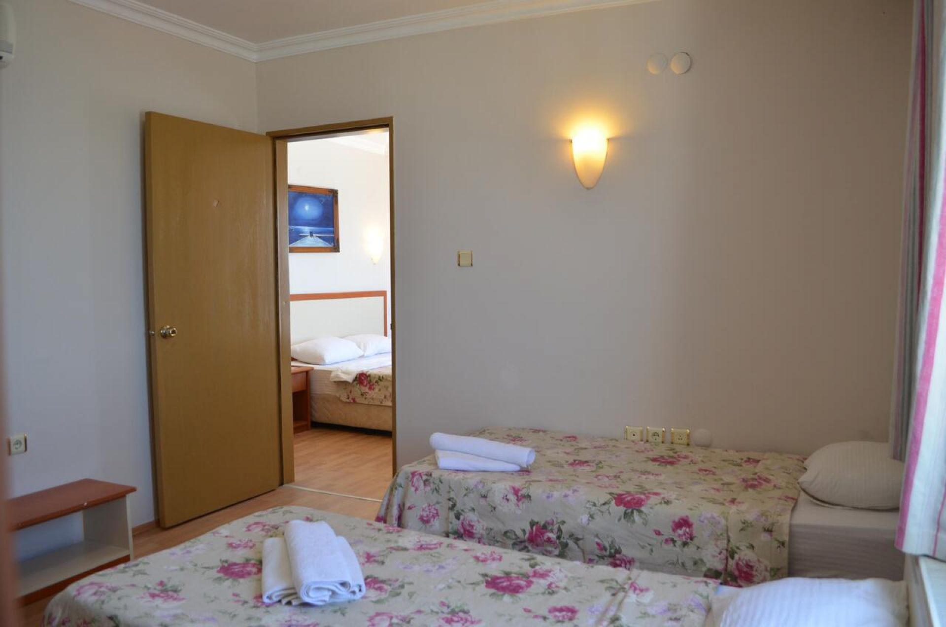 Хотелът разполага с 70 стаи, от които 65 стандартни стаи и 5 суита. Всички стаи са оборудвани с климатик, телевизор, телефон, баня с душ, сешоар, мини бар, балкон. Почистване на стаите - всеки ден, смяна на спалното бельо и кърпите - 3 пъти в седмицата.