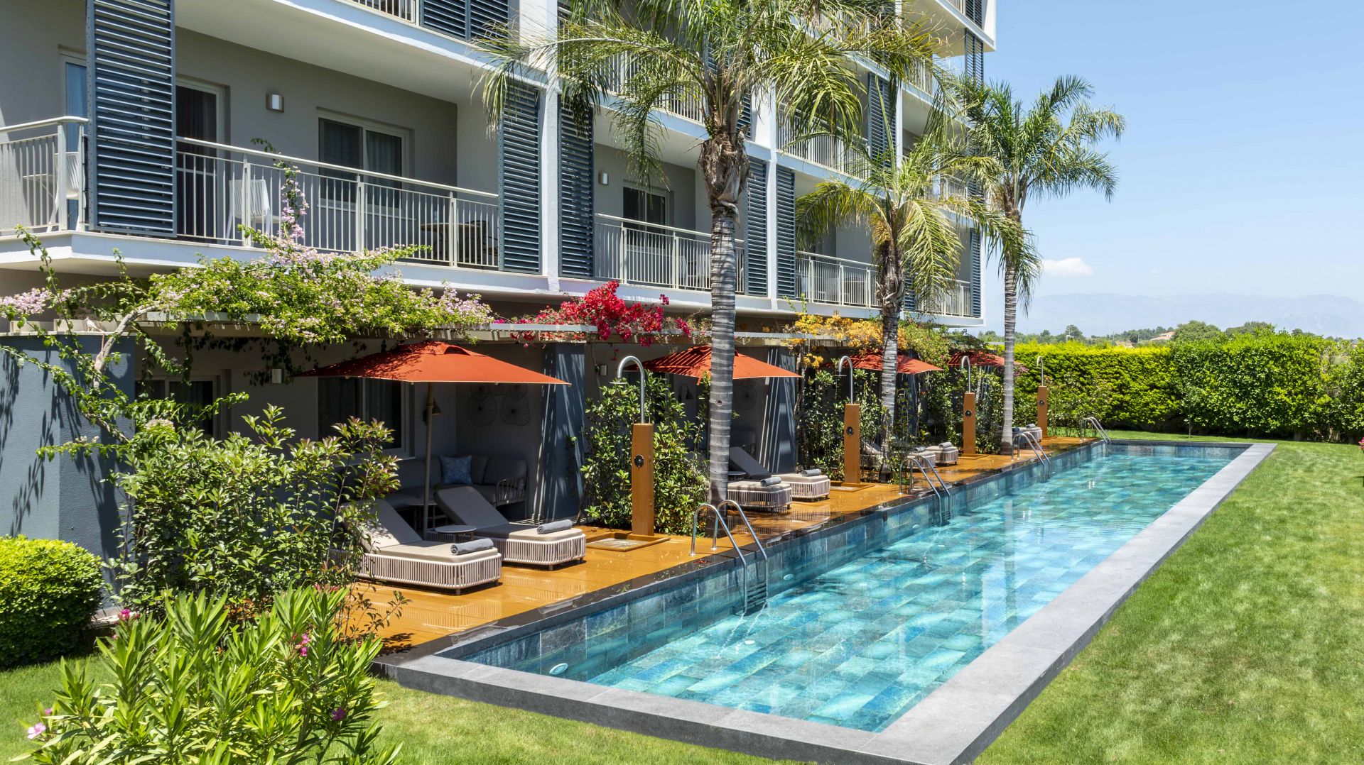 Хотелът разполага с 300 стаи – Deluxe Suite ( 40м2 + балкон 11м2 ), Deluxe Suite Sea View ( 40м2 + балкон 11м2 ), 2 Bedroom Deluxe Suite ( 46м2 + балкон 11м2 ), Deluxe Suite with Poolside Terrace (40м2 + балкон 14м2), Deluxe Suite Swim Up Adult Only +12 (40 м2 + балкон 40м2), Deluxe Suite with Relax Garden Terrace (40 м2 + балкон 40м2), Penthouse Suite with Jacuzzi Direct Sea and Ancient Theatre View (40м2 + балкон 30м2).