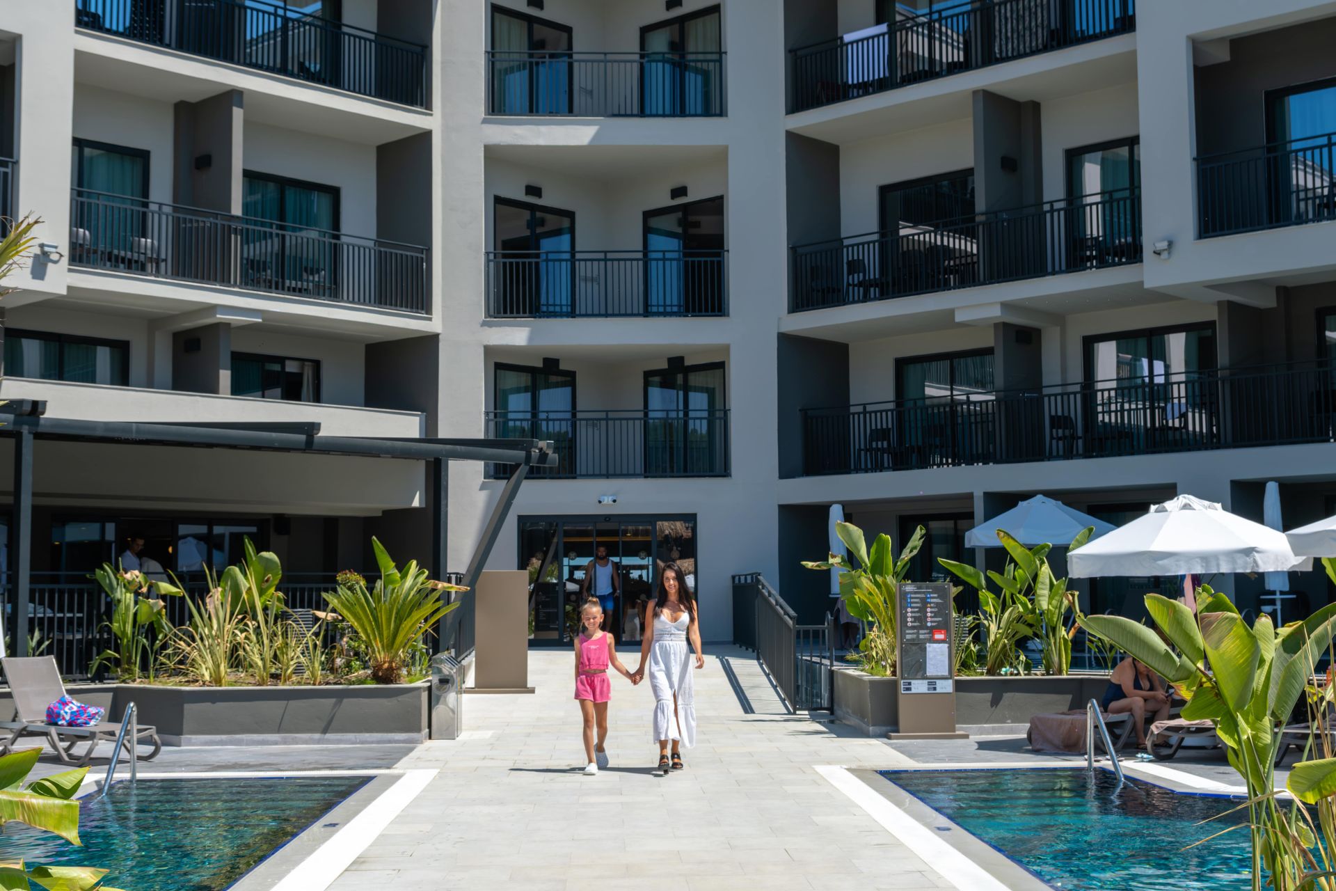3 основни ресторанта (Gourmet, детски ресторант – IXY Planet, She & He – в зоната за възрастни), 3 а-ла-карт ресторанта - Thymàri (средиземноморски, 1 безплатно посещение при минимум 5 нощувки), Mazu (азиатски), Apollon (стекхаус) - нужна е резервация за всички а-ла-карт ресторанти, 4 бара (лоби бар, 2 бара при басейните, бар на плажа), Старбъкс кафетерия (над 16-годишна възраст), сладкарница, дискотека, 1 основен открит басейн, басейн в зоната за възрастн фитнес център, СПА център.