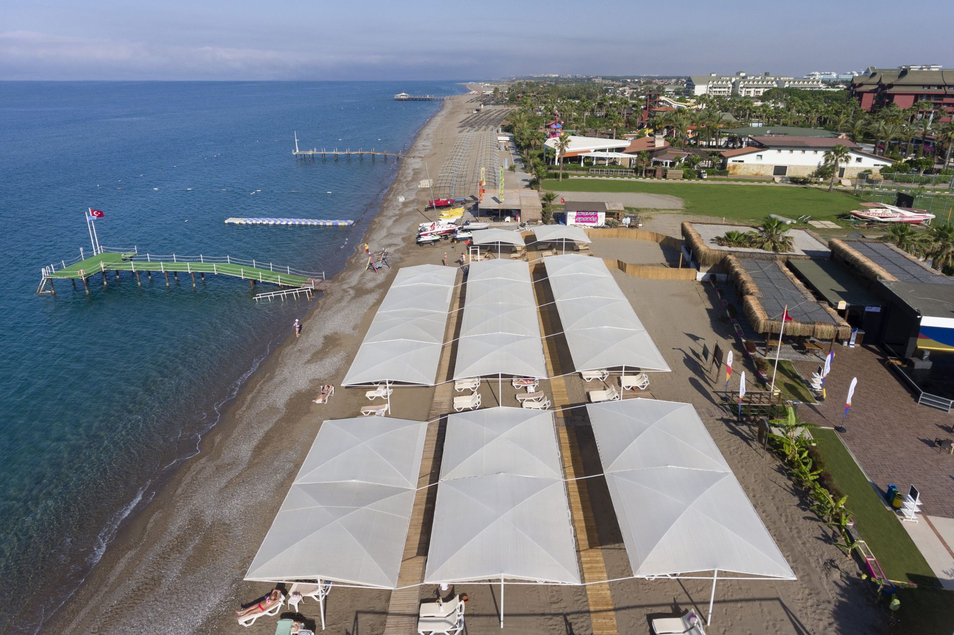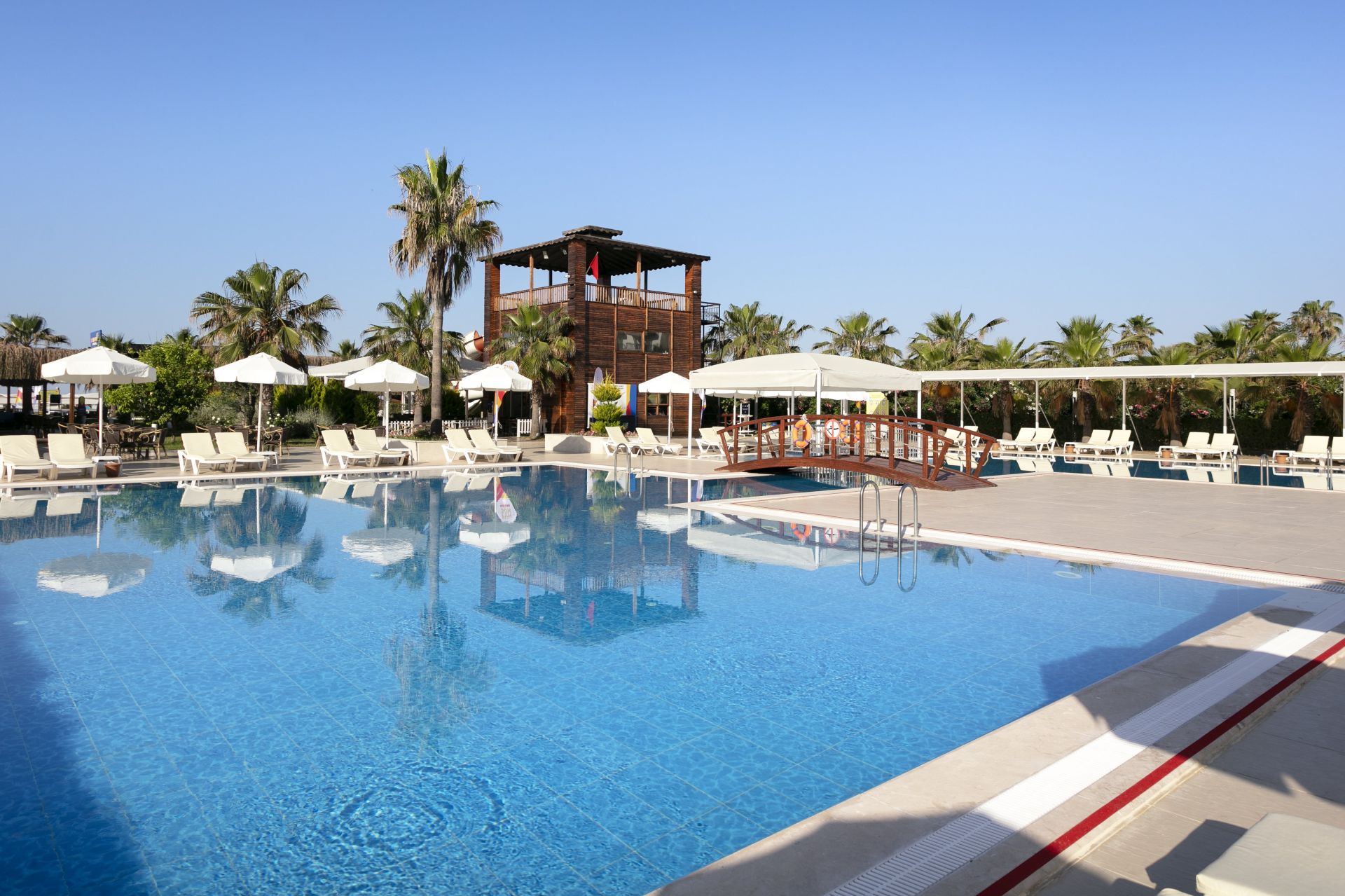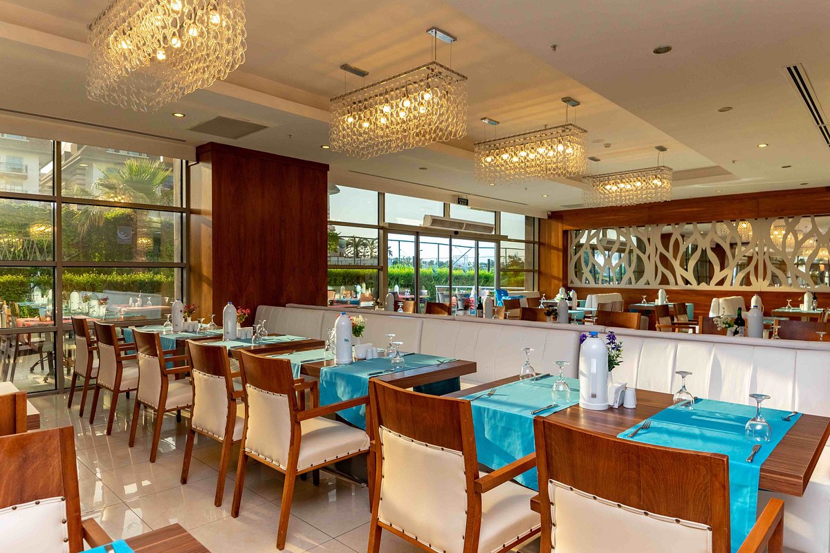 Основен ресторант, 3 бара, конферентна зала, 3 басейна, 4 водни пързалки, тенис на корт, салон за красота , СПА център, лекар, интернет кафе, пране.