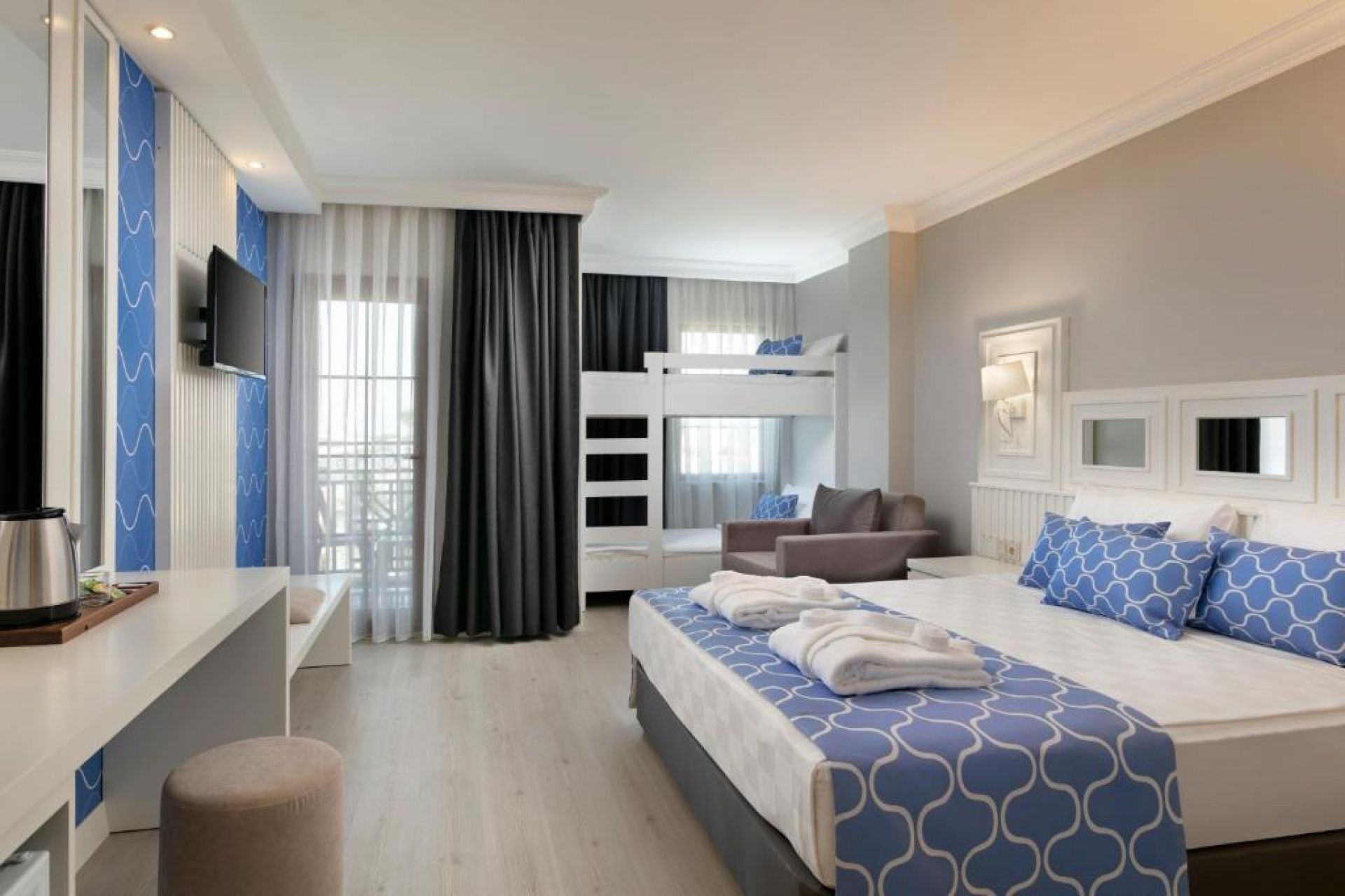 Безплатни услуги: турска баня, сауна, баскетбол, дартс, тенис на маса, тенис, плажен волейбол, аеробика, водна топка,