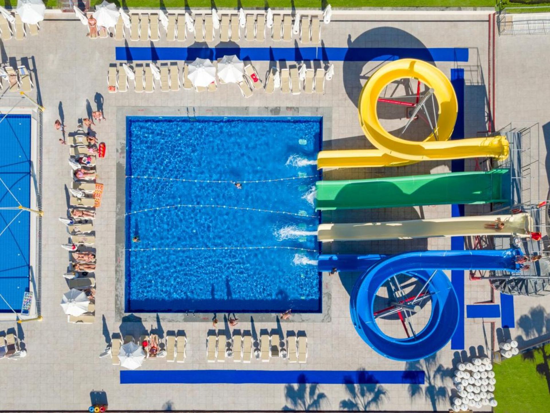 Основен ресторант, 2 а-ла-карт ресторанта (интернационален, морски - срещу заплащане, с предварителна резервация), сладкарница, 6 бара (лоби бар 24/7, втори лоби бар, бистро бар, пъб, бар на басейна, плажен бар), 3 открити басейна, 4 водни пързалки, СПА център, паркинг.