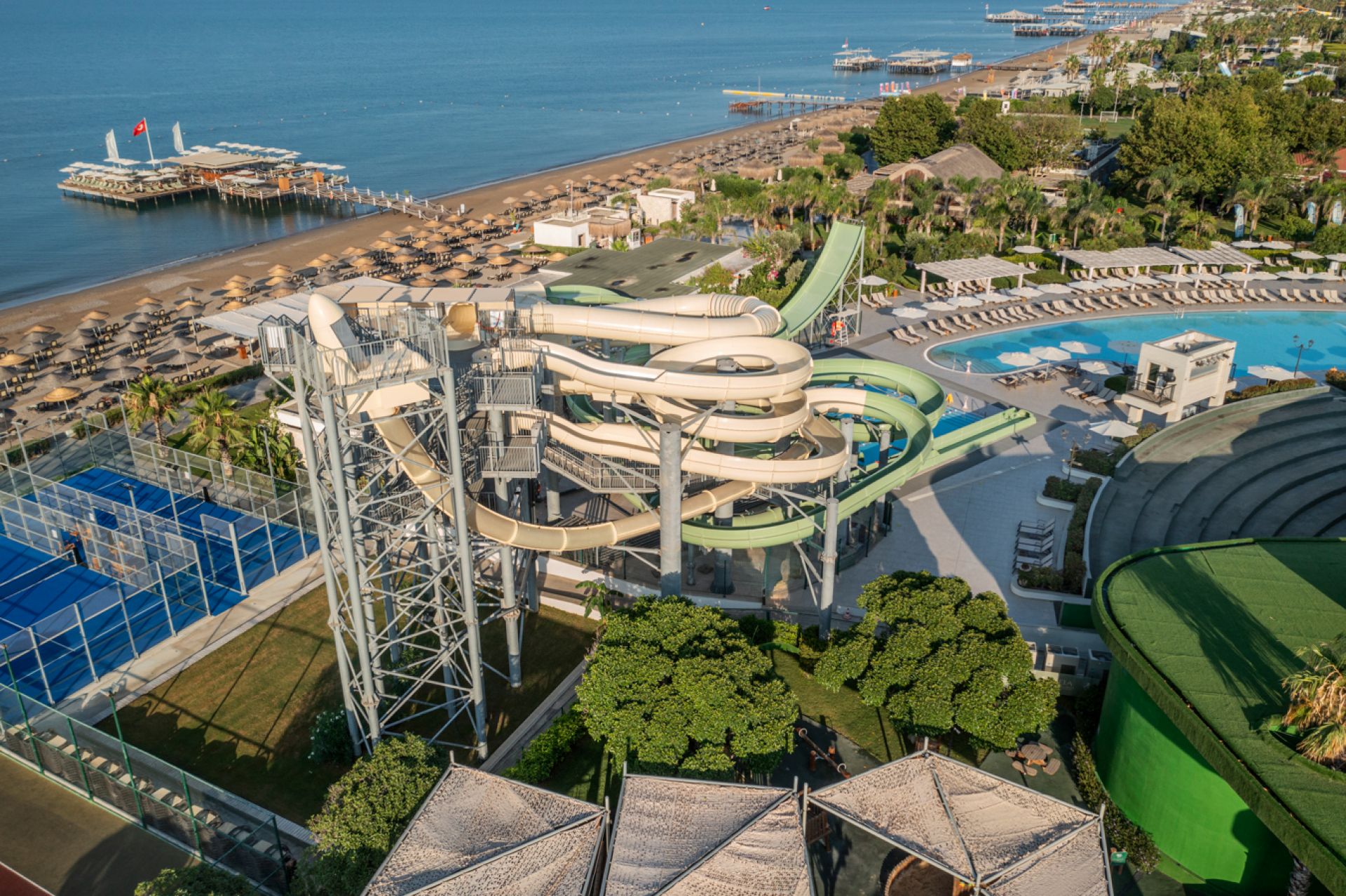 Основен ресторант, 7 а-ла-карт ресторанта (с предварителна резервация), 12 бара, дискотека, 3 открити и 2 закрити басейна, аквапарк с 5 водни пързалки, магазини, Спа - център, амфитеатър, кино, 8 конферентни зали. За децата: Детски ресторант, детска площадка, бебешки клуб (1-2 г.), мини клуб (3-7 г.), джуниър клуб (8-12 г.), тийн клуб (13-17 г.), 3 детски басейна, парк, детска дискотека. Безплатни услуги: Турска баня, сауна, фитнес, дартс, билярд, тенис на маса, тенис на корт, плажен волейбол, баскетбол, футбол, аеробика, мини-голф, безмоторни водни спортове, уроци по танци, кино, анимация, интернет. Платени услуги: Масажи, козметични услуги, фризьор, магазини, боулинг, видеоигри, арт студио, лекар, моторни водни спортове, уроци по голф, уроци по тенис, осветление за тенис кортовете.