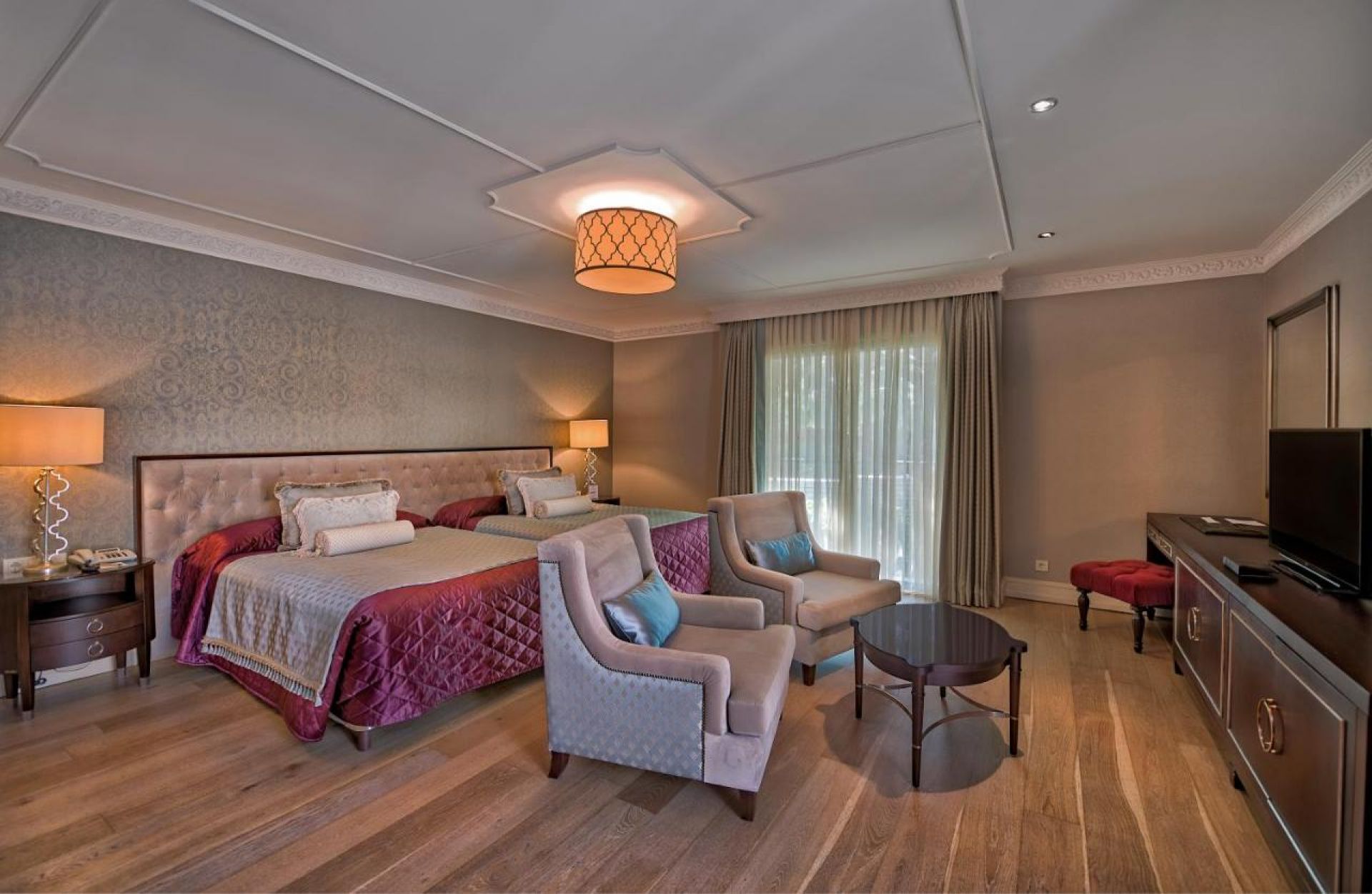 Хотелът разполага общо с 583 стаи, от които 393 стандартни стаи и 70 фамилни стаи. Всички стаи са оборудвани с: климатик, сателитна телевизия, телефон, баня с душ или вана, сешоар, мини бар (безплатно), електронен сейф (безплатно), балкон. Почистване на стаите – всеки ден, смяна на бельото и кърпите – 3 пъти в седмицата.