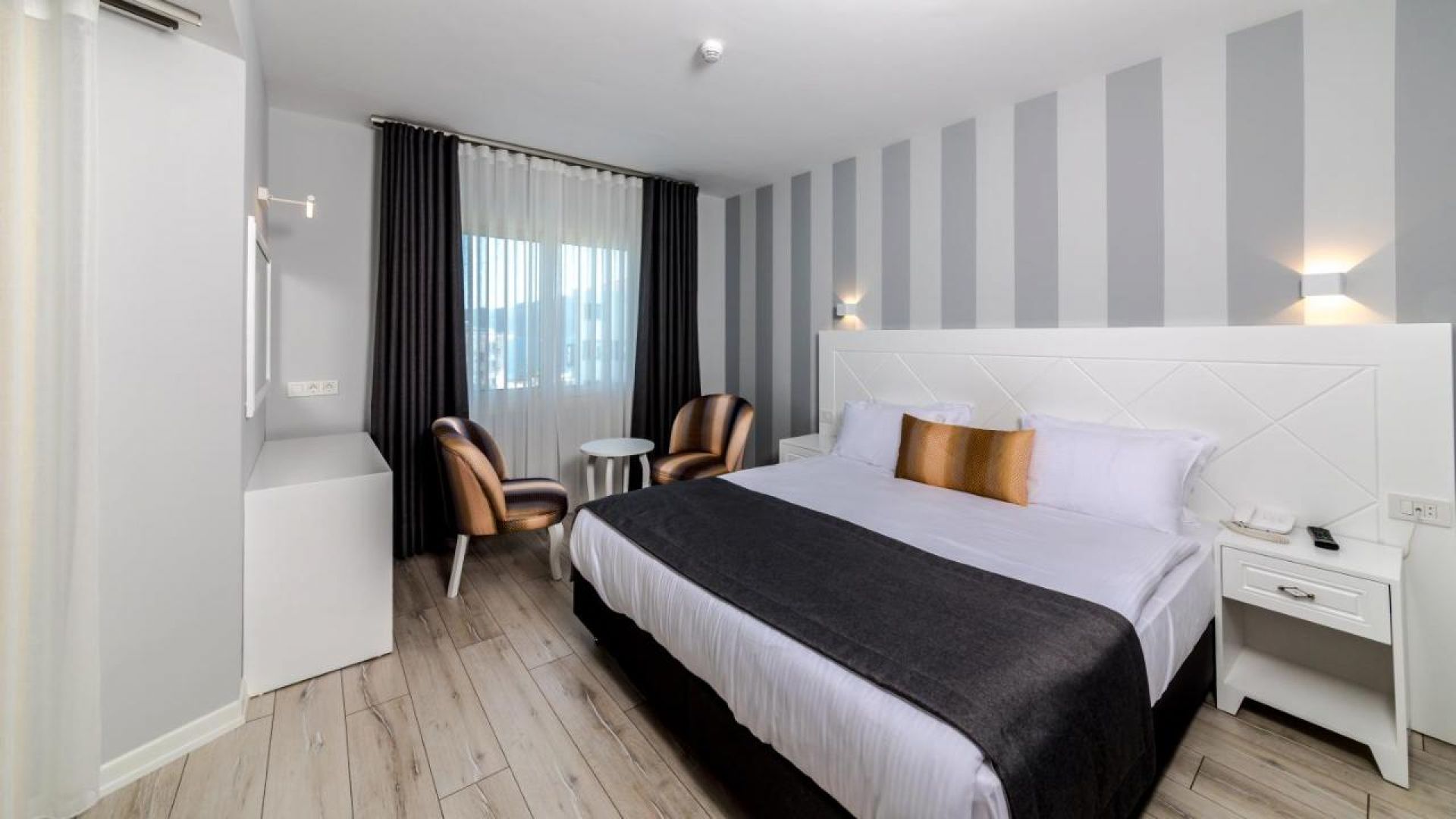 Хотелът разполага с общо 69 стаи, разположени в една основна сграда, от които Standard room (спалня или двойно легло), Family room (две преходни стаи, 1 баня, до 4 човека). Всички стаи са оборудвани с климатик, телевизор, телефон, баня с душ, сешоар, мини бар (платен), сейф (платен), балкон. Почистване на стаите – всеки ден, смяна на спалното бельо и кърпите – 2 пъти в седмицата.