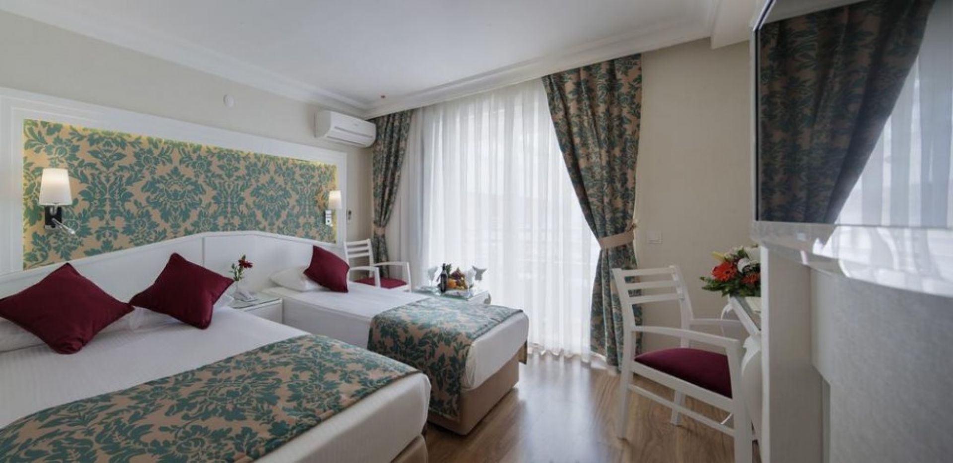 Хотелът разполага с общо 107 стаи, разположени в една основна сграда, от които 85 Standard room (16 м2), Child friendly стаи (в тях две деца се настаняват безплатно – 16 м2), 20 Connected room (32 м2), 2 Honeymoon room (16 м2). Всички стаи са оборудвани с климатик, телевизор, телефон, баня с душ/вана, сешоар, минибар (срещу заплащане), сейф (срещу заплащане). Почистване на стаите всеки ден - смяна на спалното бельо и кърпите - 2 пъти в седмицата.