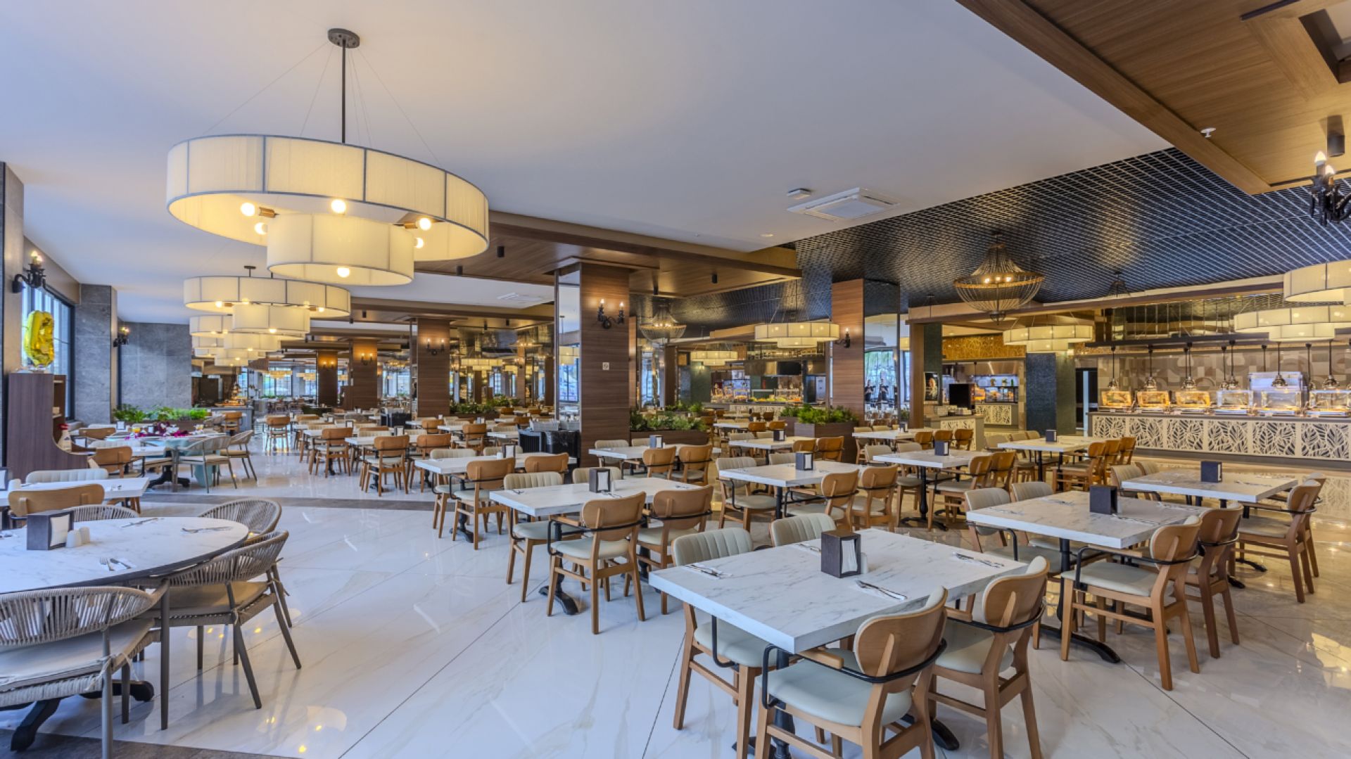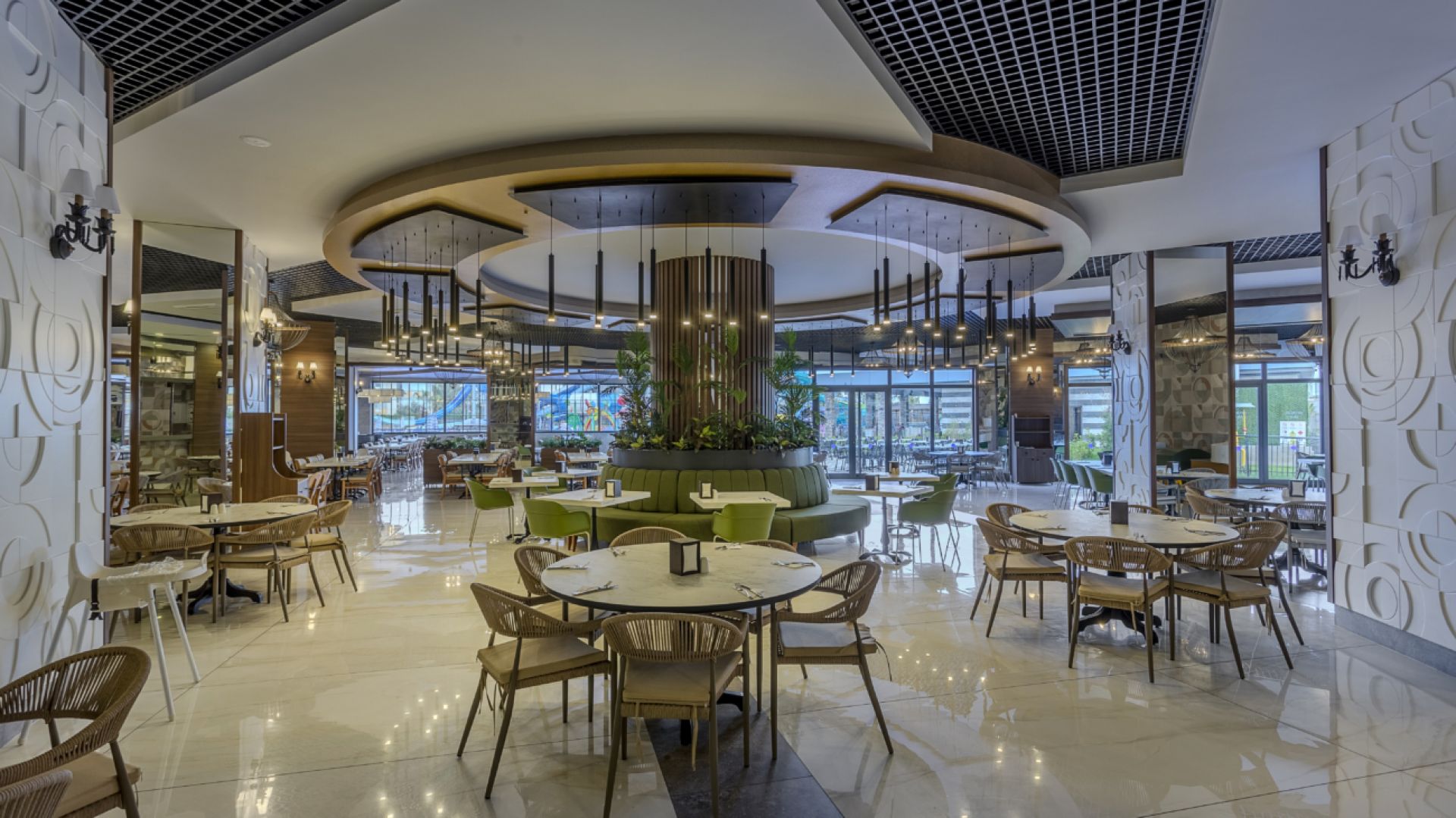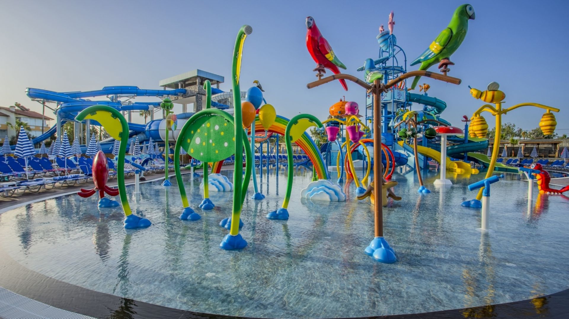Основен ресторант, 1 а-ла-карт ресторант с предварителна резервация, съгласно концепцията на хотела), сладкарница, бургер бар Burgerland (24/7), 9 бара (1 от които 24/7 и 2 от които са разположени на територията на Etftalia Island, 8 открити басейна, водни пързалки, СПА център, дискотека (на територията на Etftalia Island), магазини, конферентна зала, паркинг.