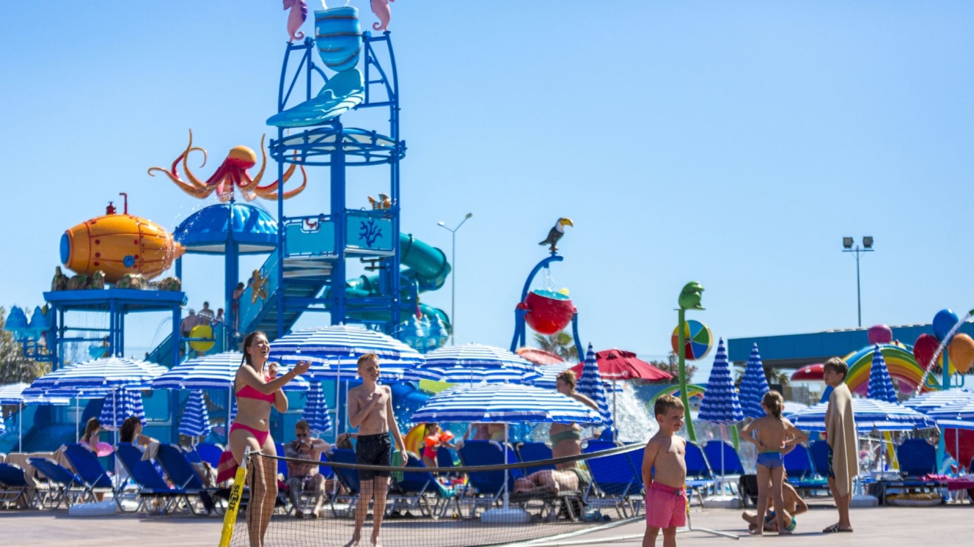 За децата: 1 детски басейн, водни пързалки, детска площадка, мини клуб (4-12г),