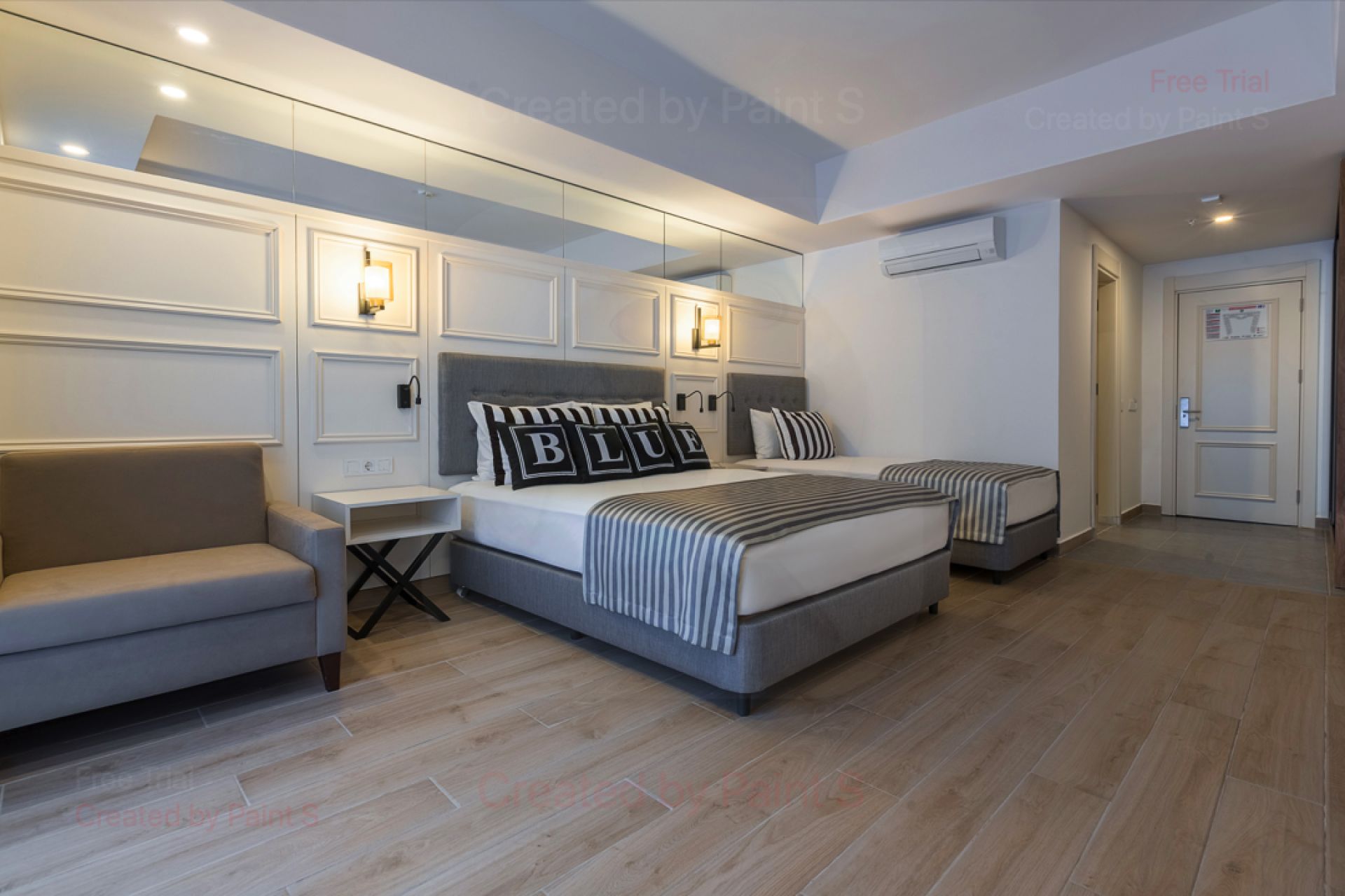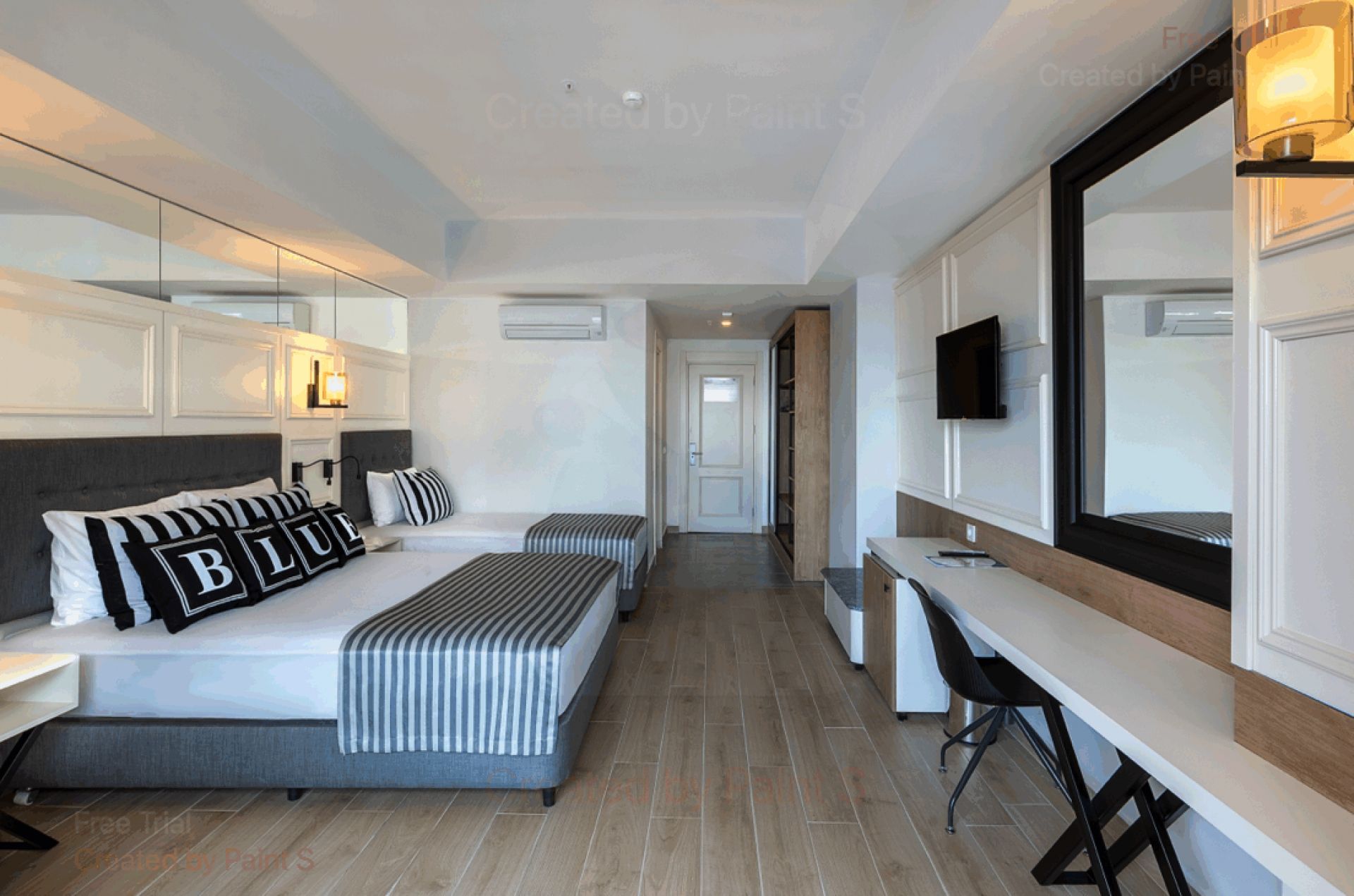 Стаи Main Building: 90 Standard room (30 м2), 101 Family Large room (1 спалня, 1 баня - 35 м2), 248 Family Room A (2 спални, 1 баня - 70 м2).