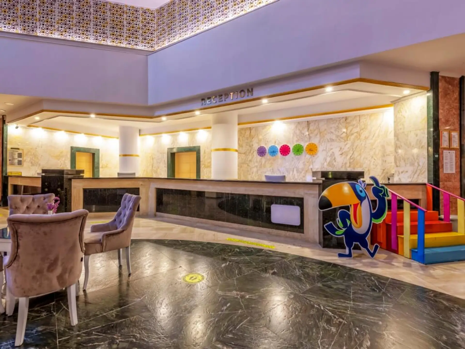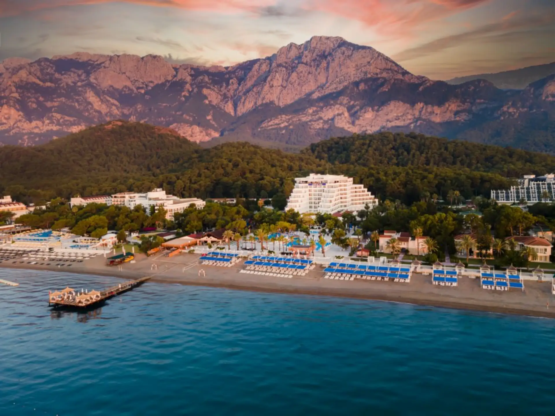 Намира се на 45 км. от летище Анталия, на 35 км. от центъра на Анталия, на 8 км. от центъра на Кемер, на брега на морето. Обща площ на хотела 43.000 м2.